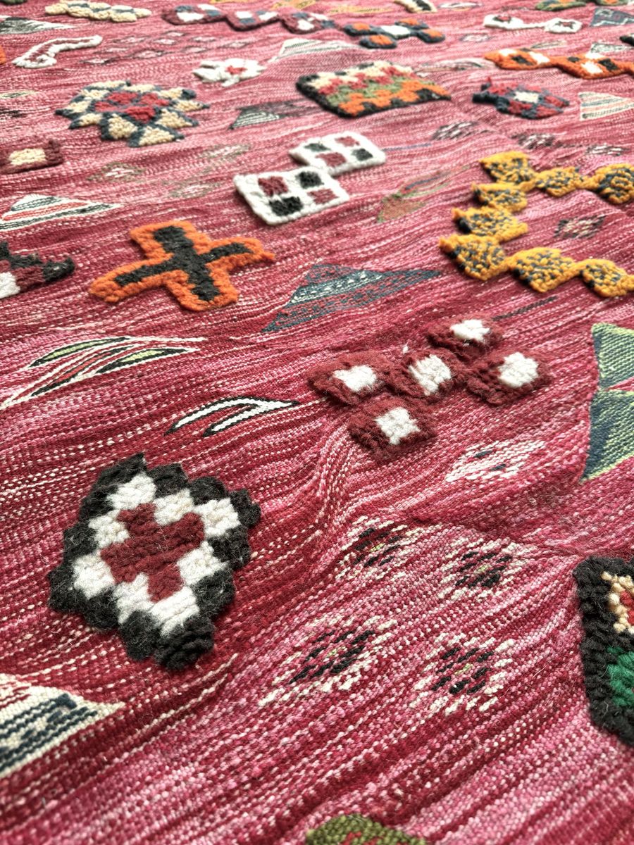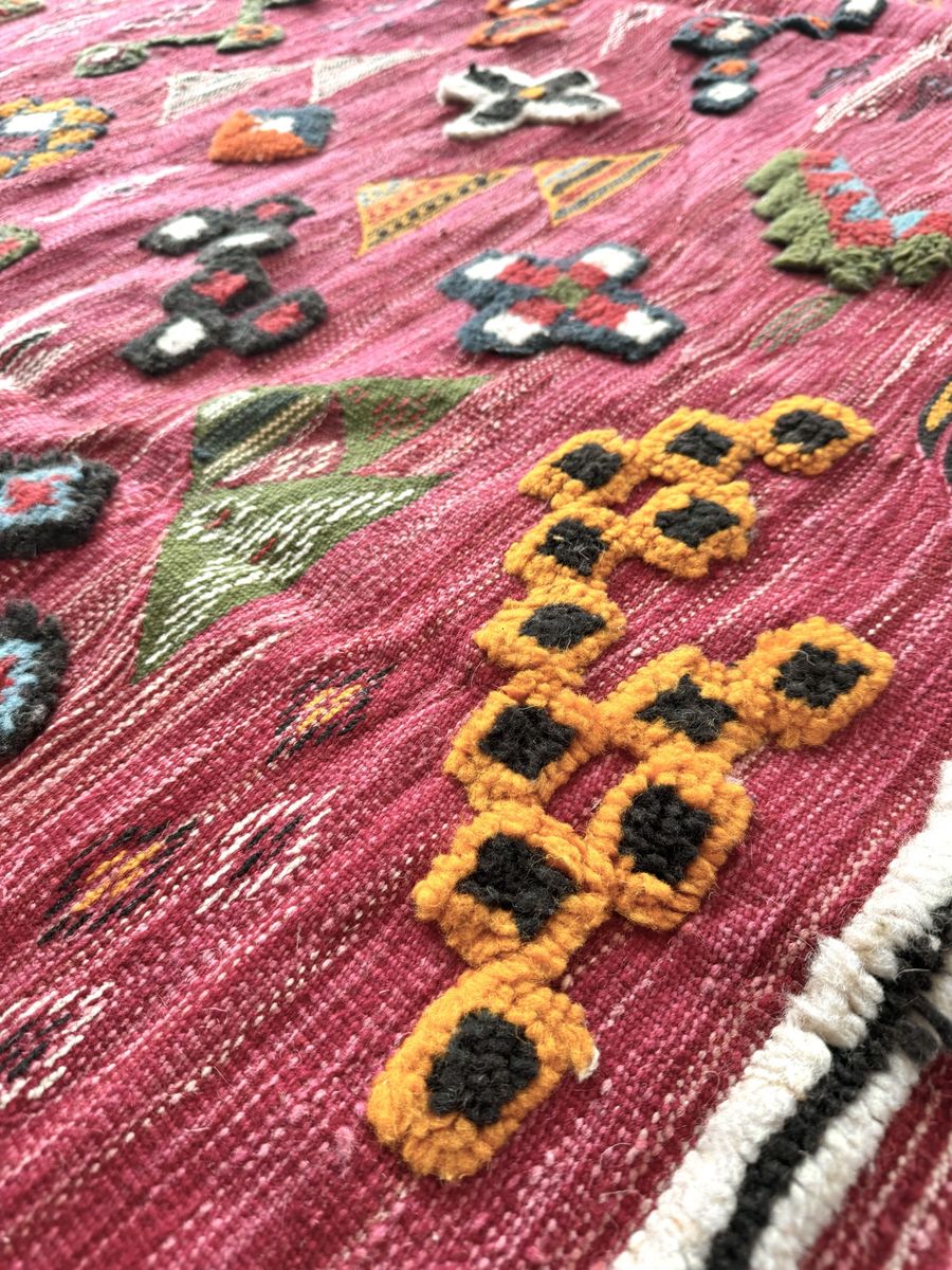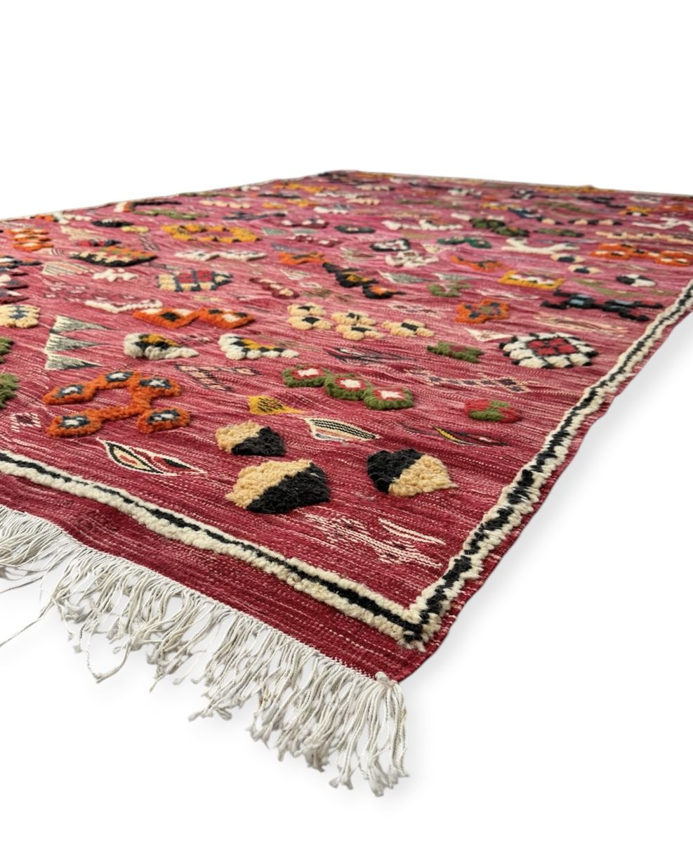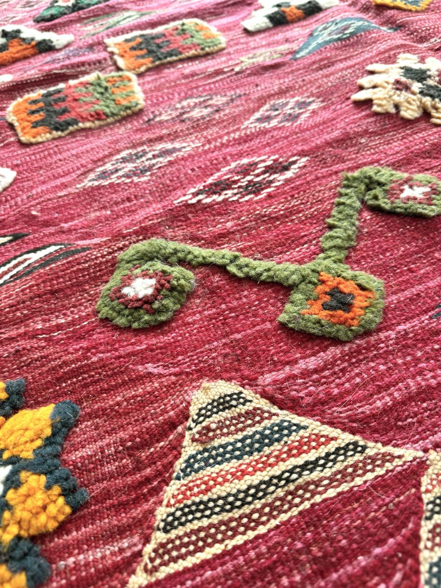VenmoHand-Knotted Moroccan Azilal Rug 10' x 76" Red Wool Tribal High-Pile Relief Area Rug