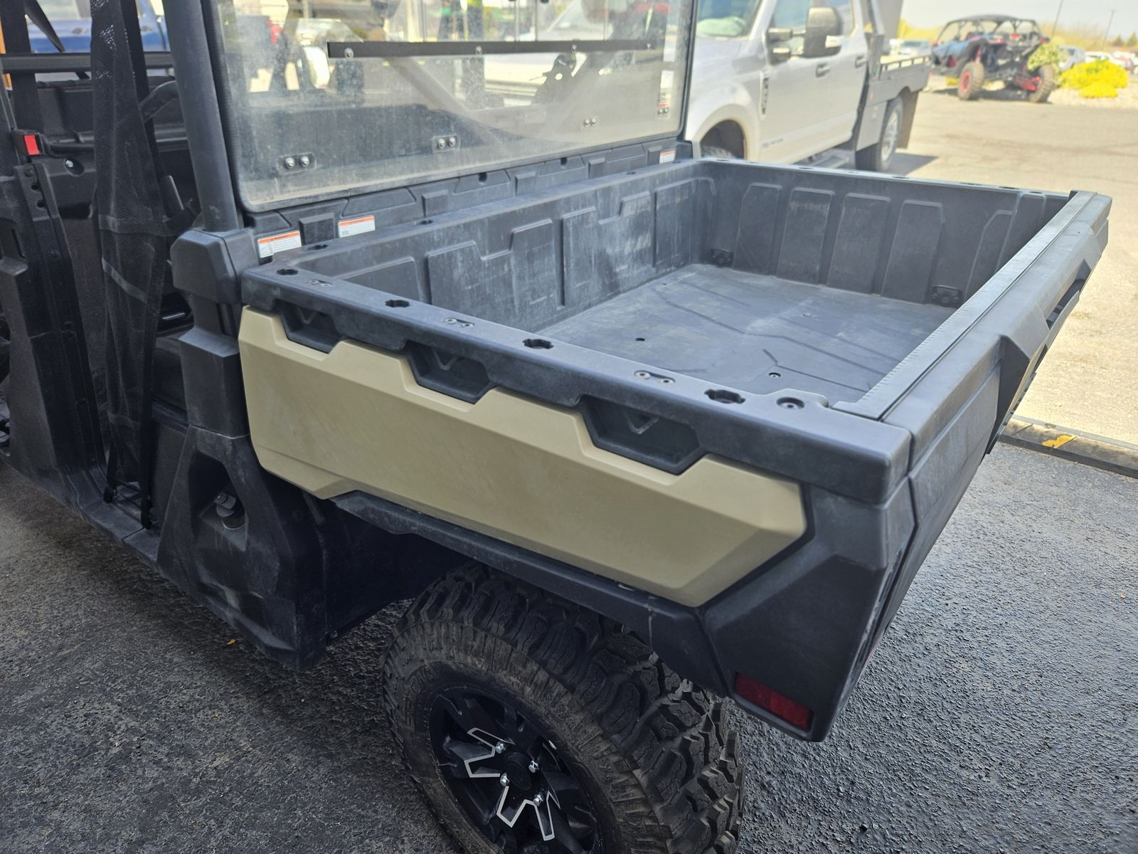 Large dumping cargo bed for hauling tools, gear, or supplies