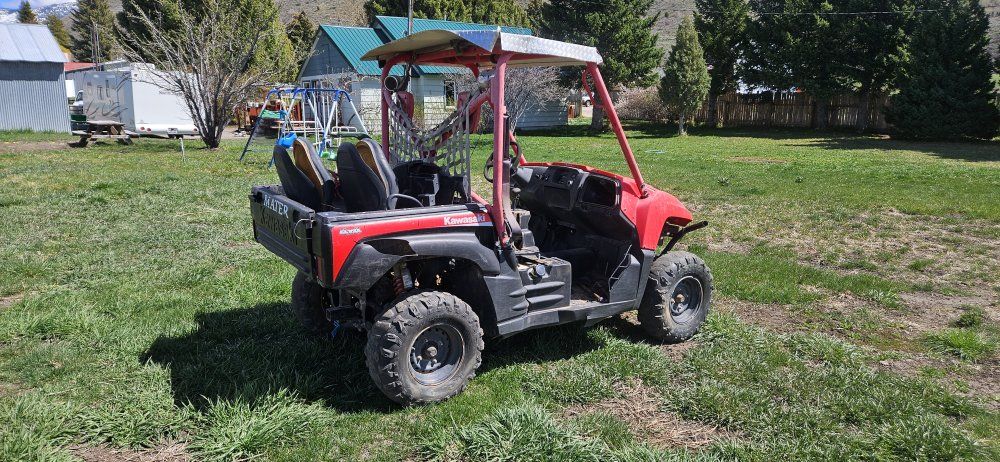 Ive got this kawasaki teryx 750 4x4 with diff lock. It runs but needs a tune up, battery, tires, seats recovered or replaced. It does burn a little oil once in a while. If I remember correctly it is an 2008 but dont quote me on that. 4x4 works all gears are working and diff lock works. Front passanger headlight is blown. Calls work best one-two08-220-5458 and will get priority. Asking $2400 obo.