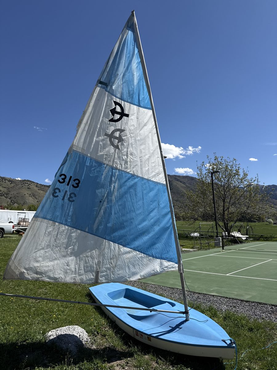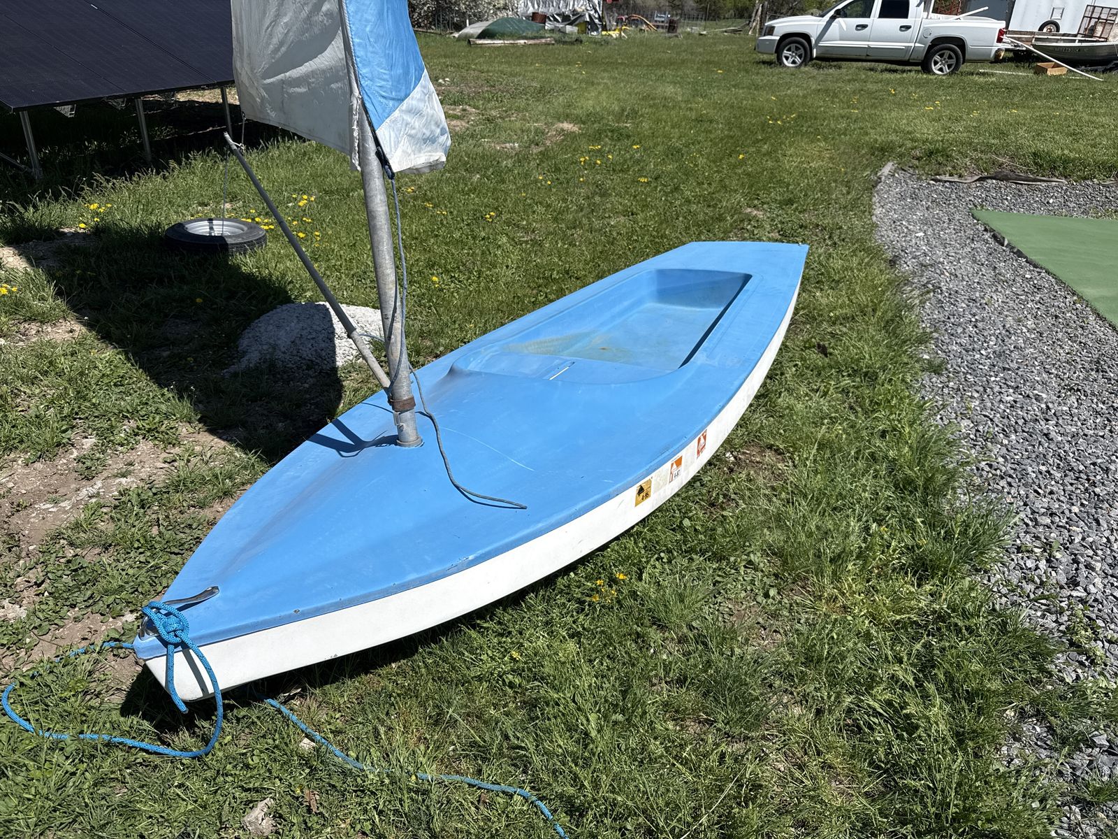 VenmoCute little sale boat. It is missing a keel and rudder and has worn spots on the sail.