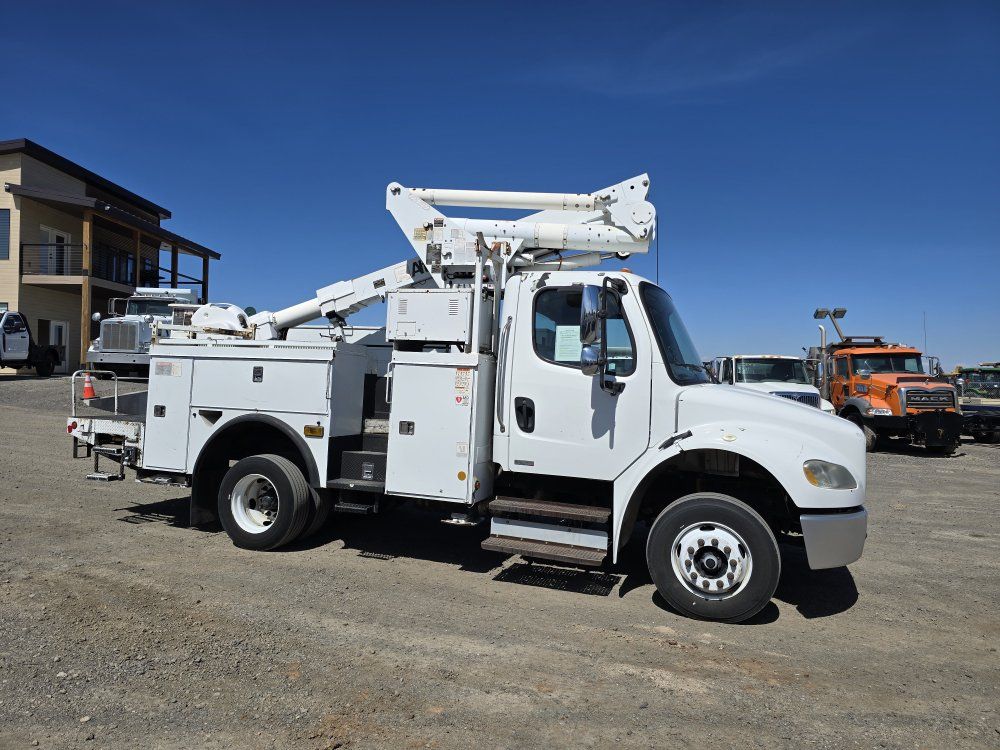 2006 Freightliner M2 42' bucket truck, 190 horsepower C7 CAT diesel engine, Allison 2100RDS automatic transmission, 77,000 miles, 8,900 hours, 25,000GVW Non CDL, power mirrors, Altec TA37M 42 foot bucket, 800 pound lifting eye, outriggers, good tires, former municipal truck 208-734-3434