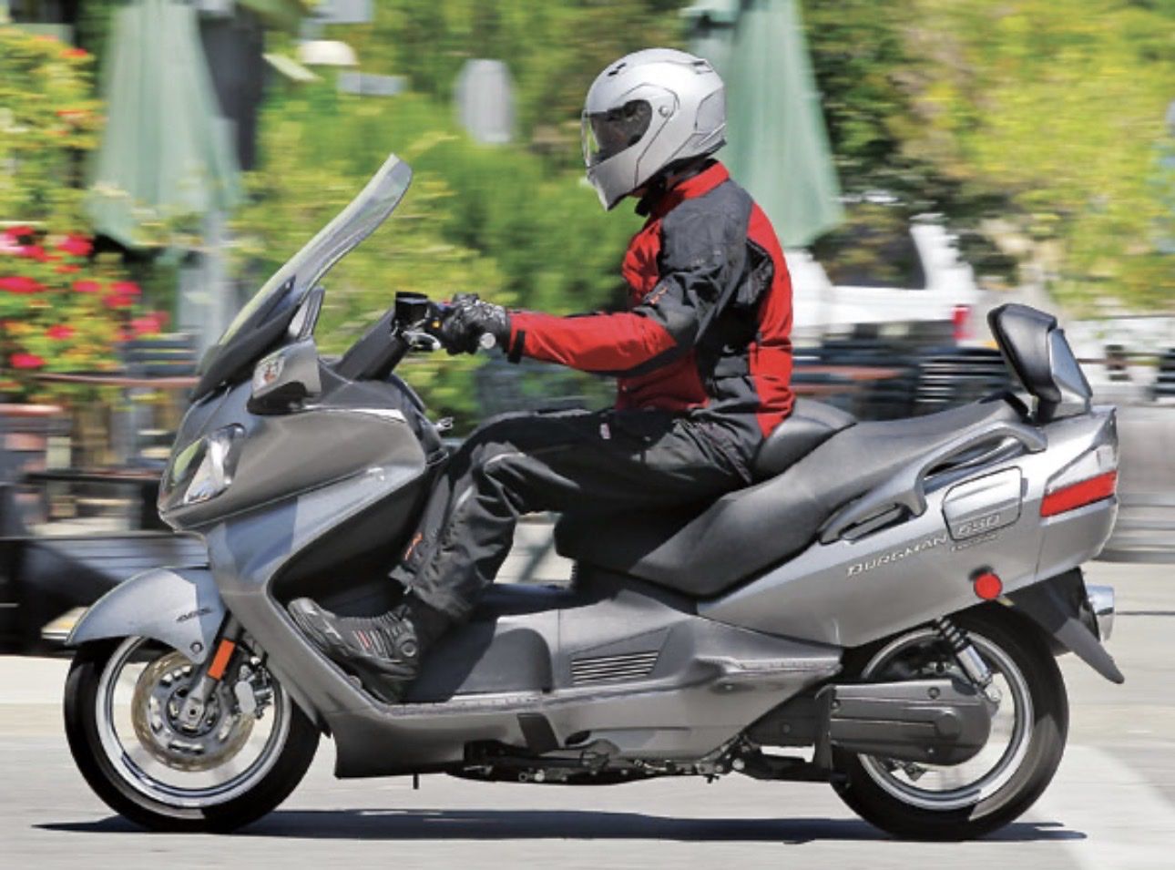 ZelleSuzuki Burgman 650 Executive 2011. Touring commuting motorcycle in scooter clothing. Japanese durability and practicality. Fun and easy to drive. Sporty yet very comfortable for short or long tours. Take it around town or on the freeway all day comfortably. Tons of extra features such as auto and manual shift mode, heated grips, electric folding mirrors, adjustable windscreen and more.