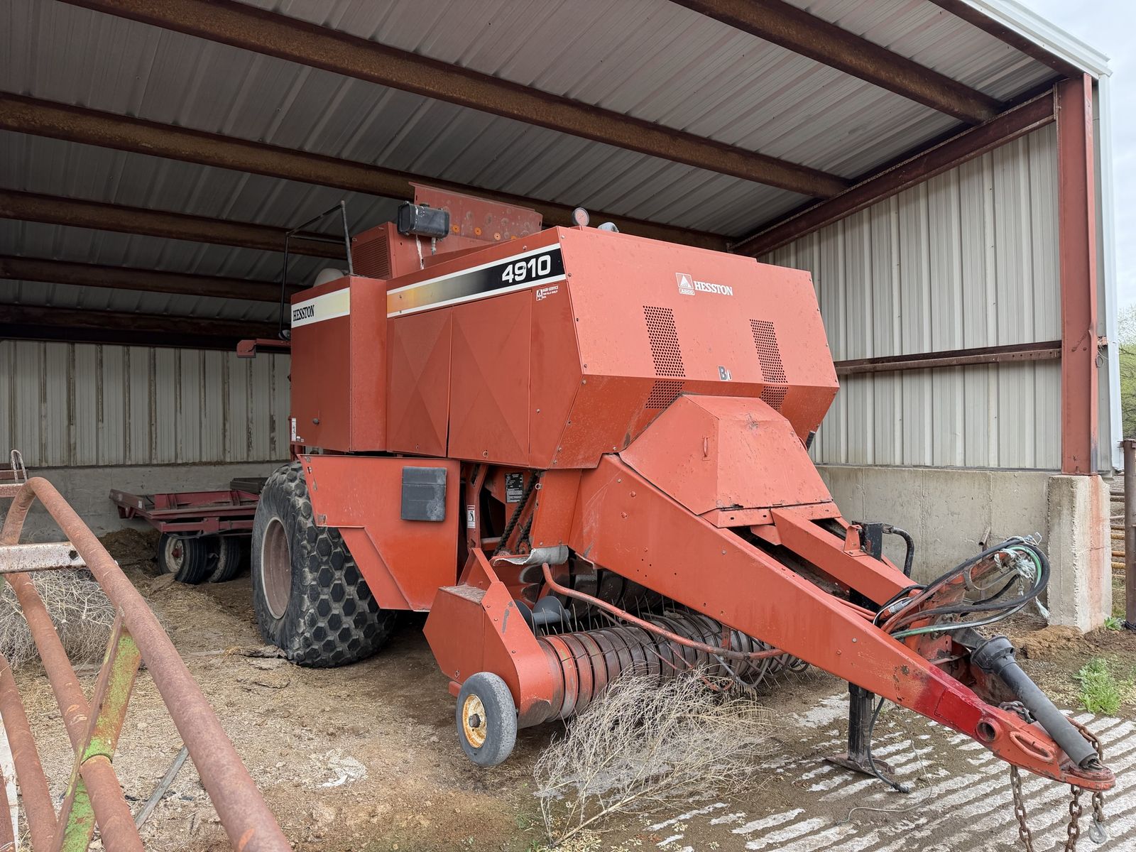 Hesston 4910 Baler, preservative kit, accumulator, worked when last used but has been under the shed for three years. Currently bale count is unknown but can hook it up to pull the bale count if interested.