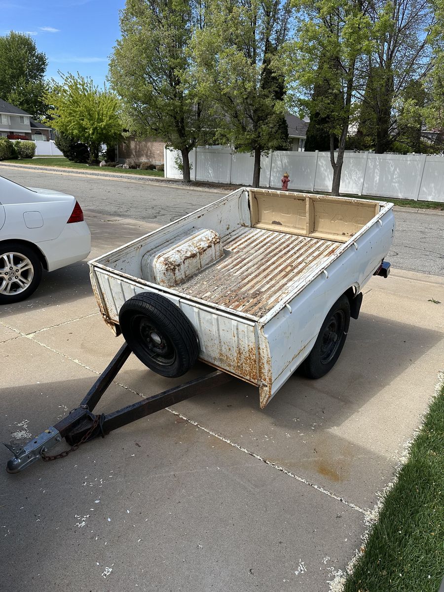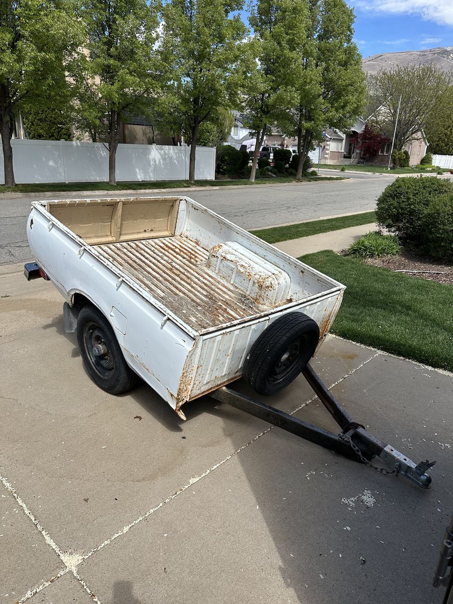 This is a small utility trailer that is fantastic for small home prjects/uses. We have used this to haul dirt, rocks, compost/wood chips, etc. We have also used it for wagon rides, caroling, and hay rides. Lights do not work, so road travel is limited. Body is solid, but rust is setting in. Tires are good, and it comes with the spare!