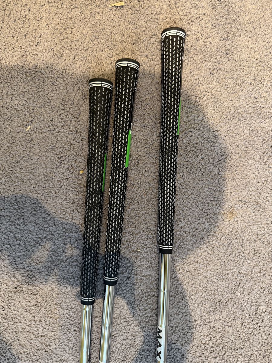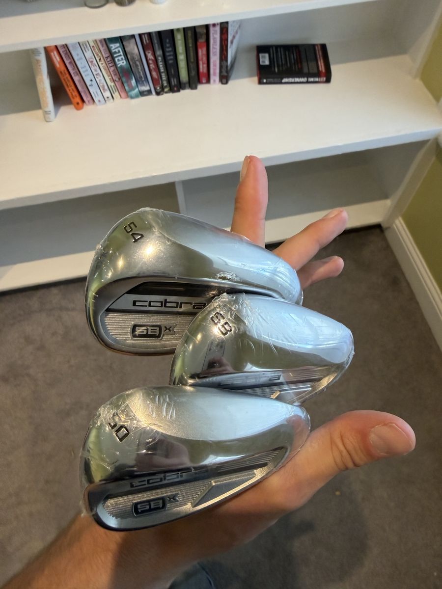Brand new set of 50,54,58 Covra SBx wedges. Still in plastic, KBS max wedge flex shafts, lamkin grips.