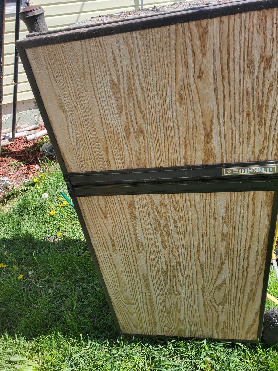Older Norcold fridge and freezer for an RV, works with either: 110 volt, 12 volt or Propane.