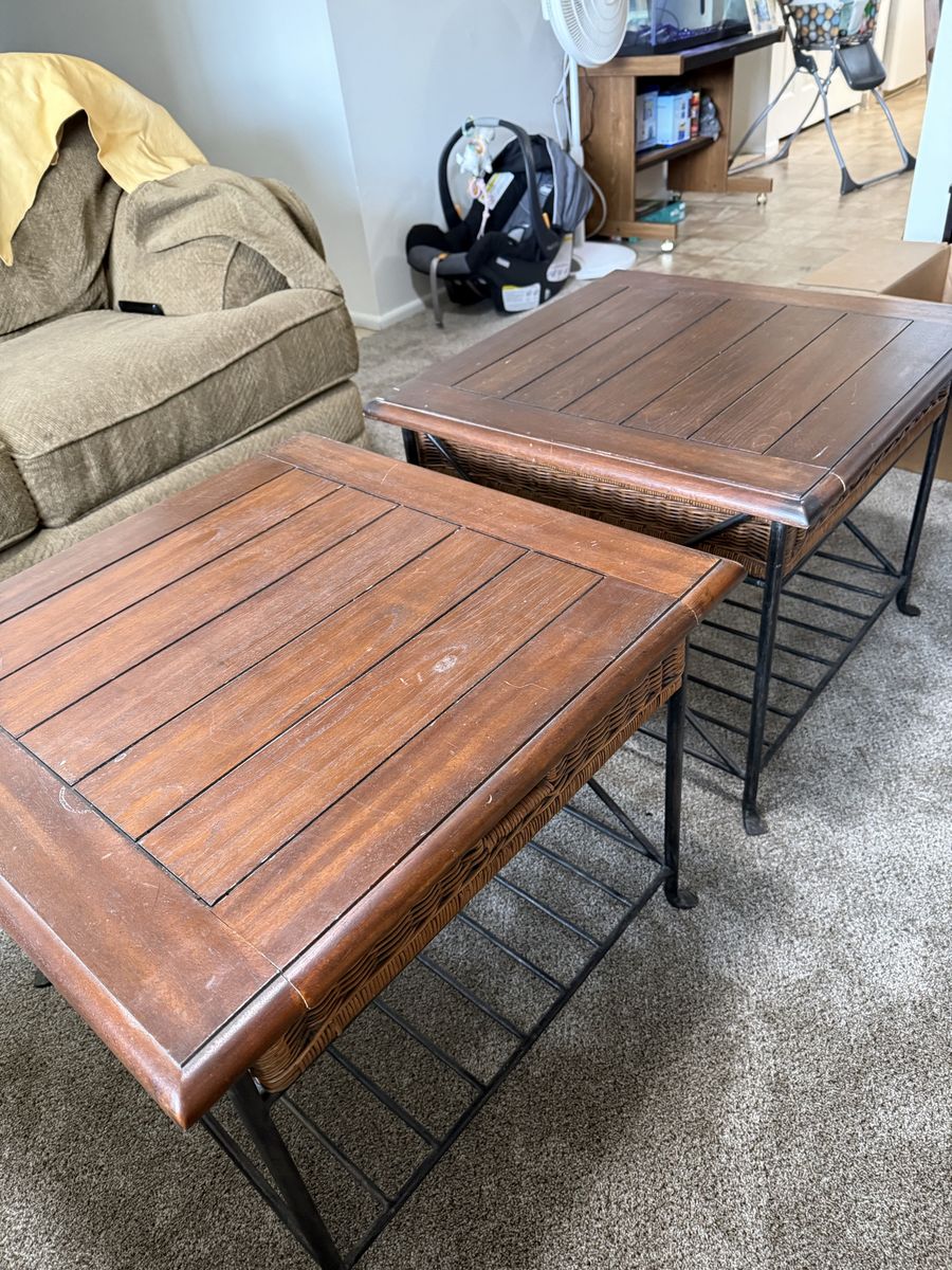 ApplePayTwo end tables, perfect condition with a deep drawer and storage underneath both. Will take cash, Venmo, PayPal, cashapp, Apple Pay. $25 for both. Message with any questions or offer I ain’t a grumpy seller!