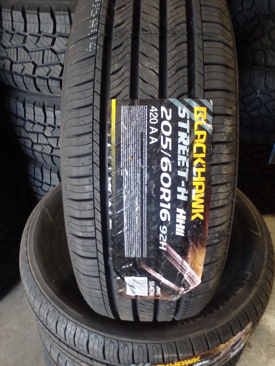 J&J TIRES & WHEELS SET OF BRAND NEW TIRES 205/6R16 BALCKHAWK STREET HH-11 FOR ONLY $299 THESE IS A GREAT TIRES FOR ANY WEATHER CONDITIONS, WE WILL INSTALL THEM FOR AN ADDITIONAL $20.00 PER TIRE INSTALLATION INCLUDES MOUNTING,BALANCING,VALVE STEAM AND TIRES DISPOSAL FEE,CALL FOR ANY QUESTIONS AT JOSE OR ROBERTO 801-878-4556 801-410-4460 OR VISIT US,WE'RE OPEN MONDAY TO SATURDAY FROM 9:00 AM TO 6:00 PM..WE HAVE A LOT'S A MORE AN NEW TIRES AND WHEELS CALL US IF YOU ARE LOOKING FOR A DIFFERENT SIZE....