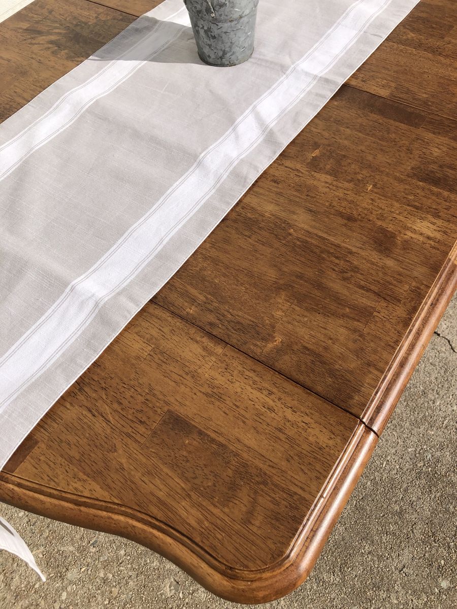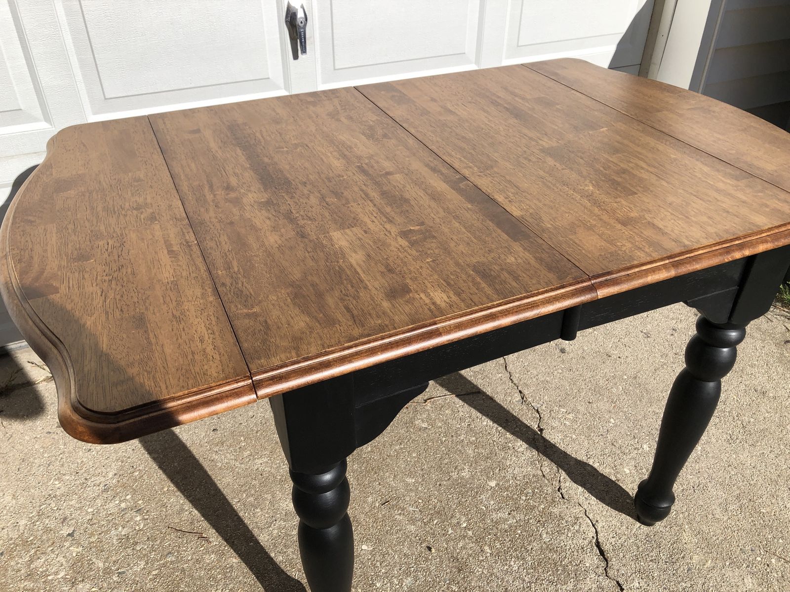 VenmoRecently refinished table with new stain on top and black painted legs. Ends of table can be up or down- swings on hinges.