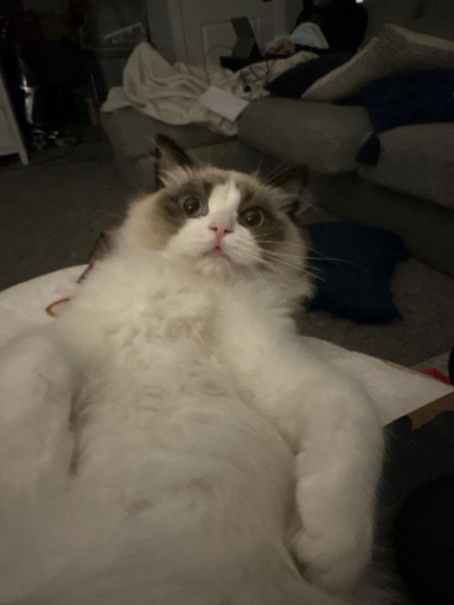 Name: King Leopold Breed: Ragdoll Cat Sex: Male Color: White, chocolate bicolor DOB: Aug 4, 2025 Adopted: Oct 21, 2025 Shots: Current Spayed/Neutered: Yes Diet: 50/50 Royal Canin Indoor Cat & Royal Canin Ragdoll Cat dry kibble. Toppers include: Costco brand kibble chunks in gravy, dehydrated egg yolk, salmon oil, bone broth, green lipped mussel powder, dehydrated anchovies, dehydrated rabbit pieces. Prefers water in a stainless steel bowl (not a pet fountain!) Personality: If you’re looking for a Velcro cat, Leo is your guy! He absolutely LOVES to cuddle and be held. His favorite thing is to be held like a baby or sitting up and looking over your shoulder. He knows how to sit, stay, come, sit pretty (sit back in haunches) and stand up (he’s still working on that). He sits before being fed, and his release word is “okay”. He follows you from room to room, and if you’re sitting, he is next to you. He loves to snuggle especially if you’re laying down, and will fall asleep right by you. He loves to tunnel under a blanket and have a nap. He is an extremely loving cat and we have never had an issue with spraying (he was also neutered very young). He is very very playful, and loves to “hunt”— he loves fake birds on a string, balls, and springs. He loves going on walks and will come with his harness and leash. He is a pretty vocal cat, and he has a pretty deep meow and also chitters at his toys which is adorable. He is not a picky eater, so it’s probably best to give him a measured amount of food for his weight/age. He is a grazer, so his kibble is left out all day, this helps him to pace himself and not scarf everything all at once. He is an indoor cat only. He hasn’t been super exposed to other cats/dogs, but the neighbor dog and cat he is fine with, so slow exposure would be best. Asking price: $1,300