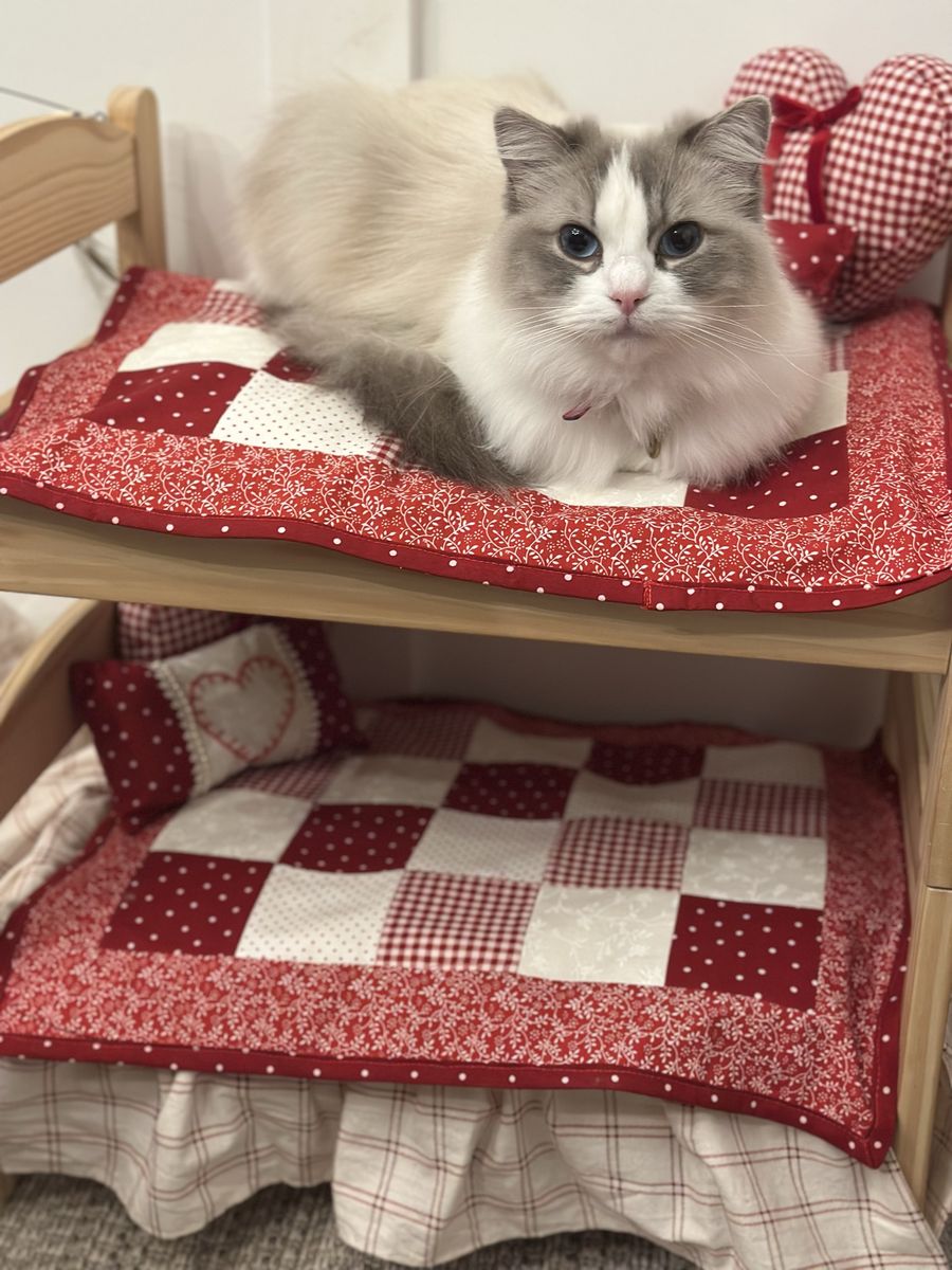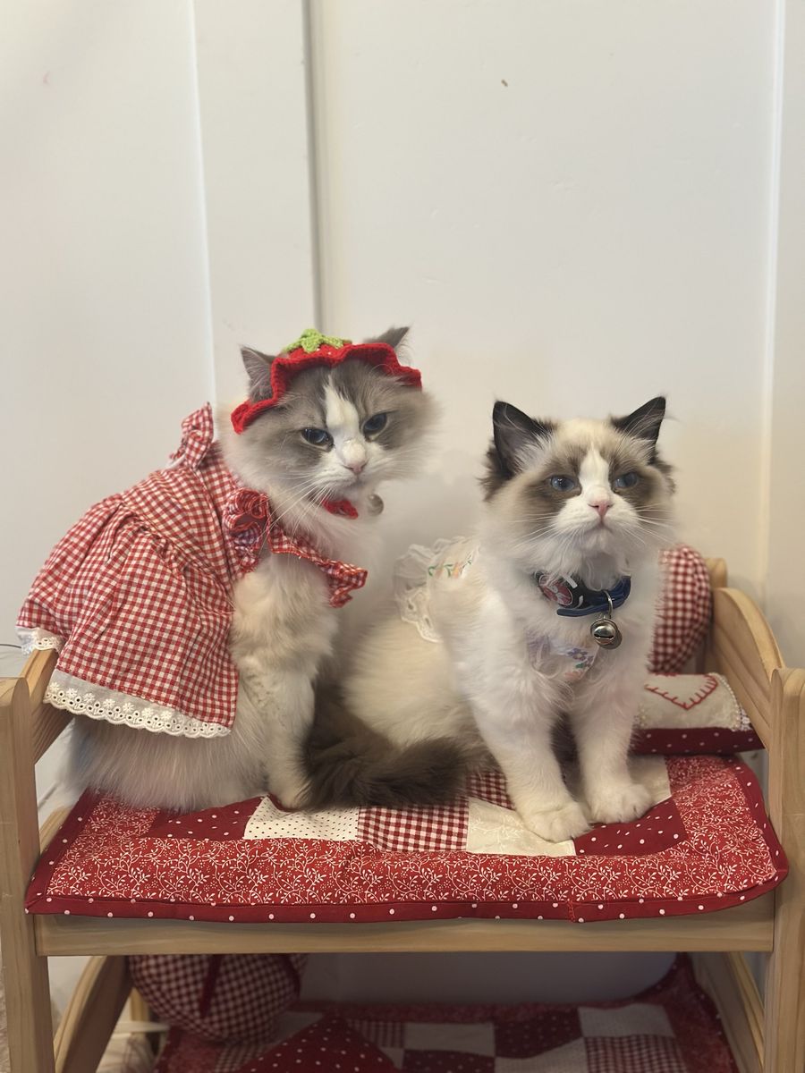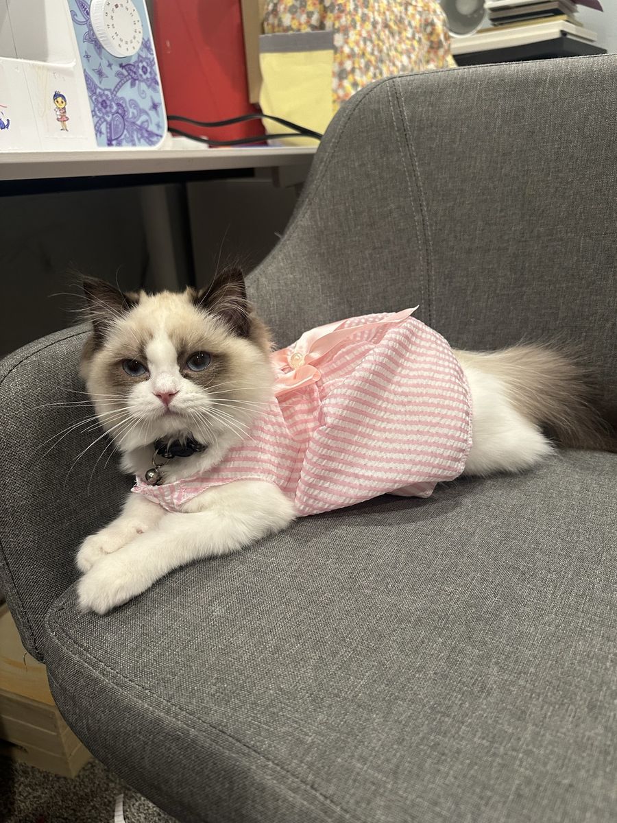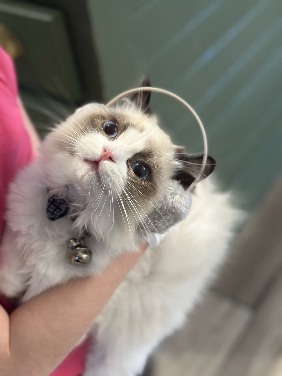 VenmoName: Duchess Flufferton Breed: Ragdoll Cat Sex: Female Color: White, blue bicolor DOB: April 28, 2023 Adopted: December 14, 2024 Shots: Current Spayed/Neutered: Yes Diet: 50/50 Royal Canin Indoor Cat & Royal Canin Ragdoll Cat dry kibble. Toppers include: Costco brand kibble chunks in gravy, dehydrated egg yolk, salmon oil, bone broth, green lipped mussel powder, dehydrated anchovies, dehydrated rabbit pieces. Prefers water in a stainless steel bowl (not a pet fountain!) was on PurinaOne Live Clear because of my allergies, but it didn’t seem to help me Personality: Duchess is in every sense of the word, a Queen. She attaches to one person, and is utterly devoted to them. She follows you from room to room, however she does like her space; she would rather be next to you than be held by you. She loves getting pets and scratches, and likes her booty to be spanked. She doesn’t really play with toys, but occasionally she will chase a bird on a string. She loves going for walks, and will come with her two harnesses and leashes. I often put her in bows or little dresses, it’s too cute. She is very chill, low maintenance and loving, she also has the tiniest little meow; it’s very feminine! As far as her size, she is on the smaller end for ragdolls and will stay that way. She can be picky about food, so keep it consistent; she is a grazer, so her kibble is left out all day, this helps her to feel comfortable— she will avoid food if she is stressed. She knows how to sit, sit pretty (sit back in haunches) and come, but she can be stubborn. She hasn’t been super exposed to other cats/dogs, but the neighbor dog and cat she is fine with, so slow exposure would be best. She is an indoor cat only. Asking price: $1,100