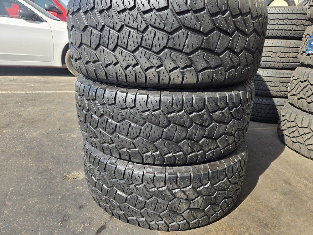 USED SET OF TIRES!! The brand is PATHFINDER ALL TERRAIN is 275/55R20 Free mount, balance, and brand new valve stems. Like new 85% tread left $380 for all 4 DOT 2024 $5 disposal fee per every old tire you leave for us to dispose of Also check out our GOOGLE reviews to assure you’re in good hands, just search (Oliver Tires) We also offer lots of other sizes new and used. Call or text for availability Espańol; 8016885139 Office: 8016620227 Or come visit us at 3010 west 500 south Salt Lake City Utah.