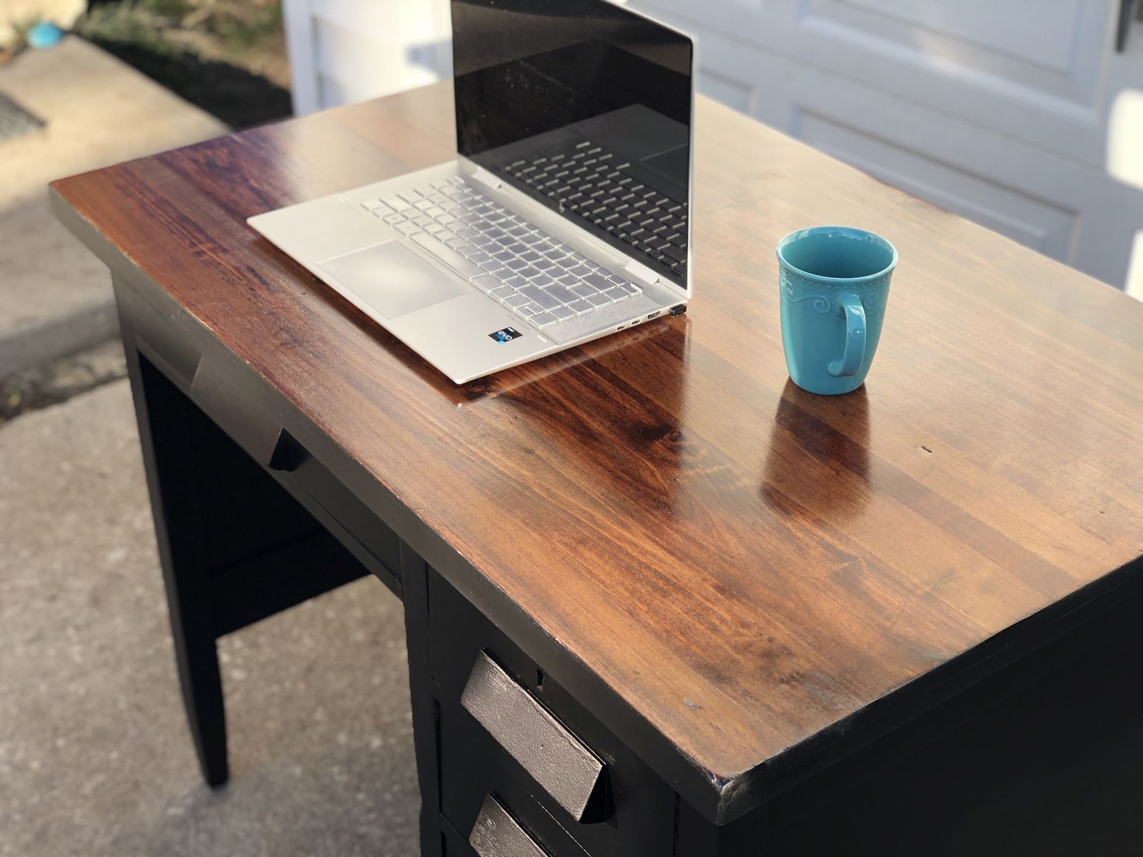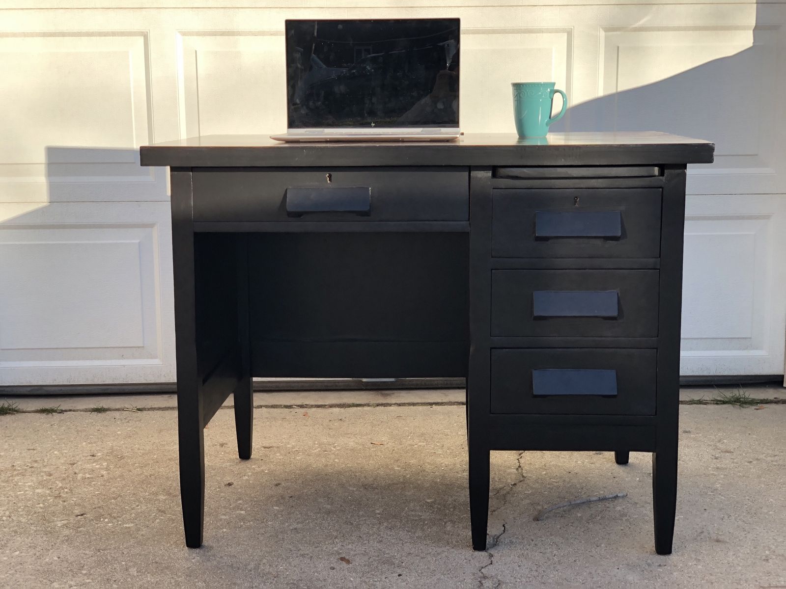 VenmoRecently refinished vintage desk with new stained top and black sides and drawer fronts.