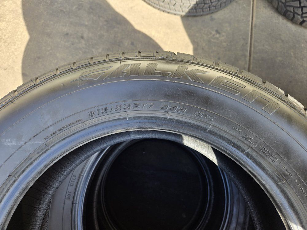 USED SET OF TIRES!! The brand is FALKEB PRO G5 TOURING AS Size is 215/65R17 Free mount, balance, and brand new valve stems. Like new 90% tread left $320 for all 4 DOT 2025 $5 disposal fee per every old tire you leave for us to dispose of Also check out our GOOGLE reviews to assure you’re in good hands, just search (Oliver Tires) We also offer lots of other sizes new and used. Call or text for availability Espańol; 8016885139 Office: 8016620227 Or come visit us at 3010 west 500 south Salt Lake City Utah.