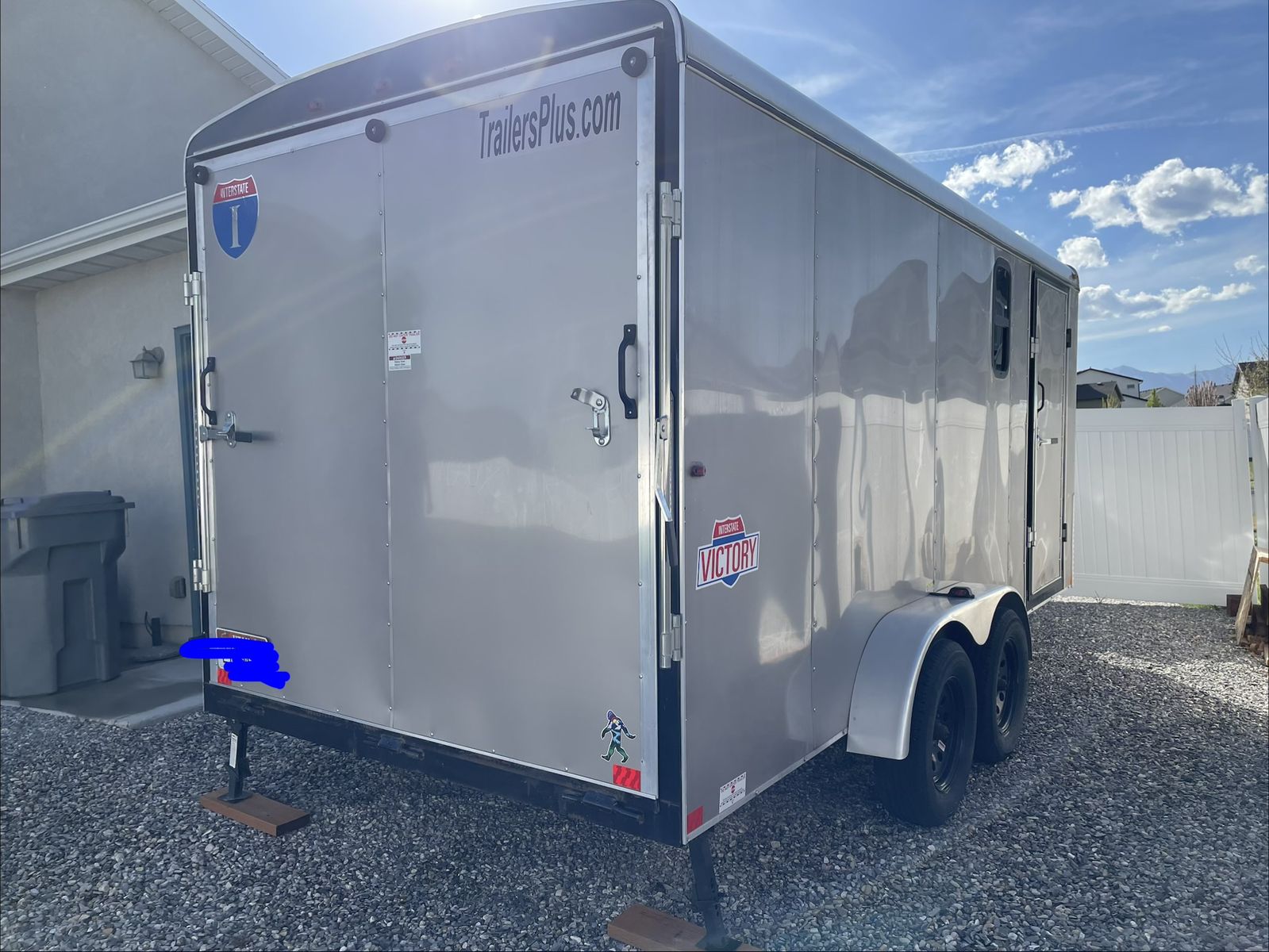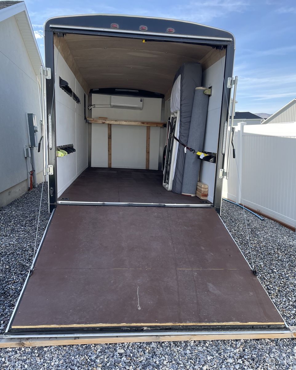 This trailer is nearly new. I've only used to it store and haul two ATVs and to camp in a few times. It has a mini split, 2 windows, a table in the front, 6 heavy duty tie downs, jacks in the back, a spare tire, the ceiling is insulated and it has quite a bit of etrac installed. The door width is 75" and the door height is 73". The inside width is 78", the inside height is 79" and the full length from back to nose inside is 196". I made a very comfy bed inside using the etrac, and if the buyer wants that they're welcome to have it. I have the title in hand. Any transaction would have to be either cash or done in person at your bank. (Sorry, too many scammers.) Text preferred: 801-615-9708. Thanks.