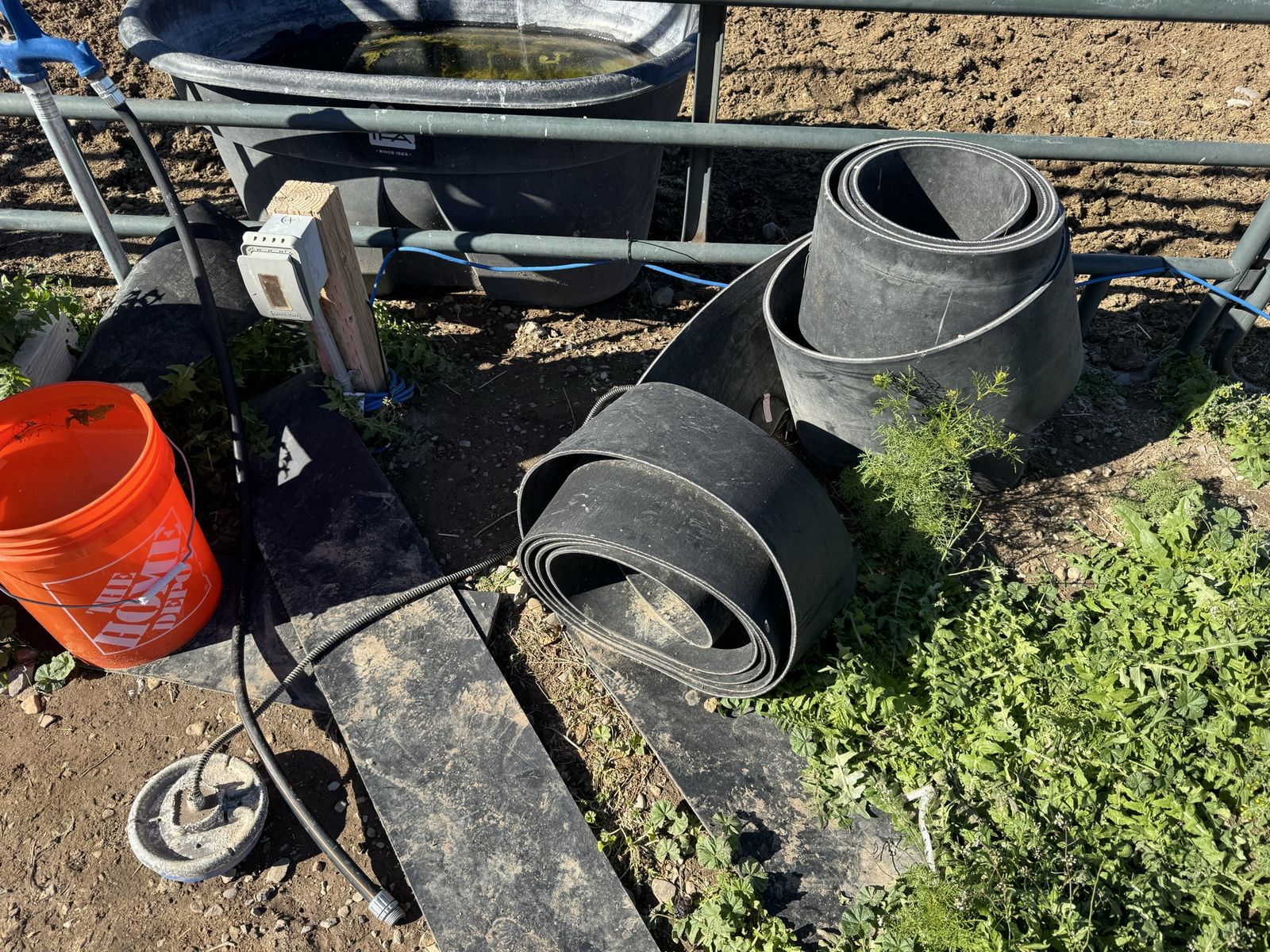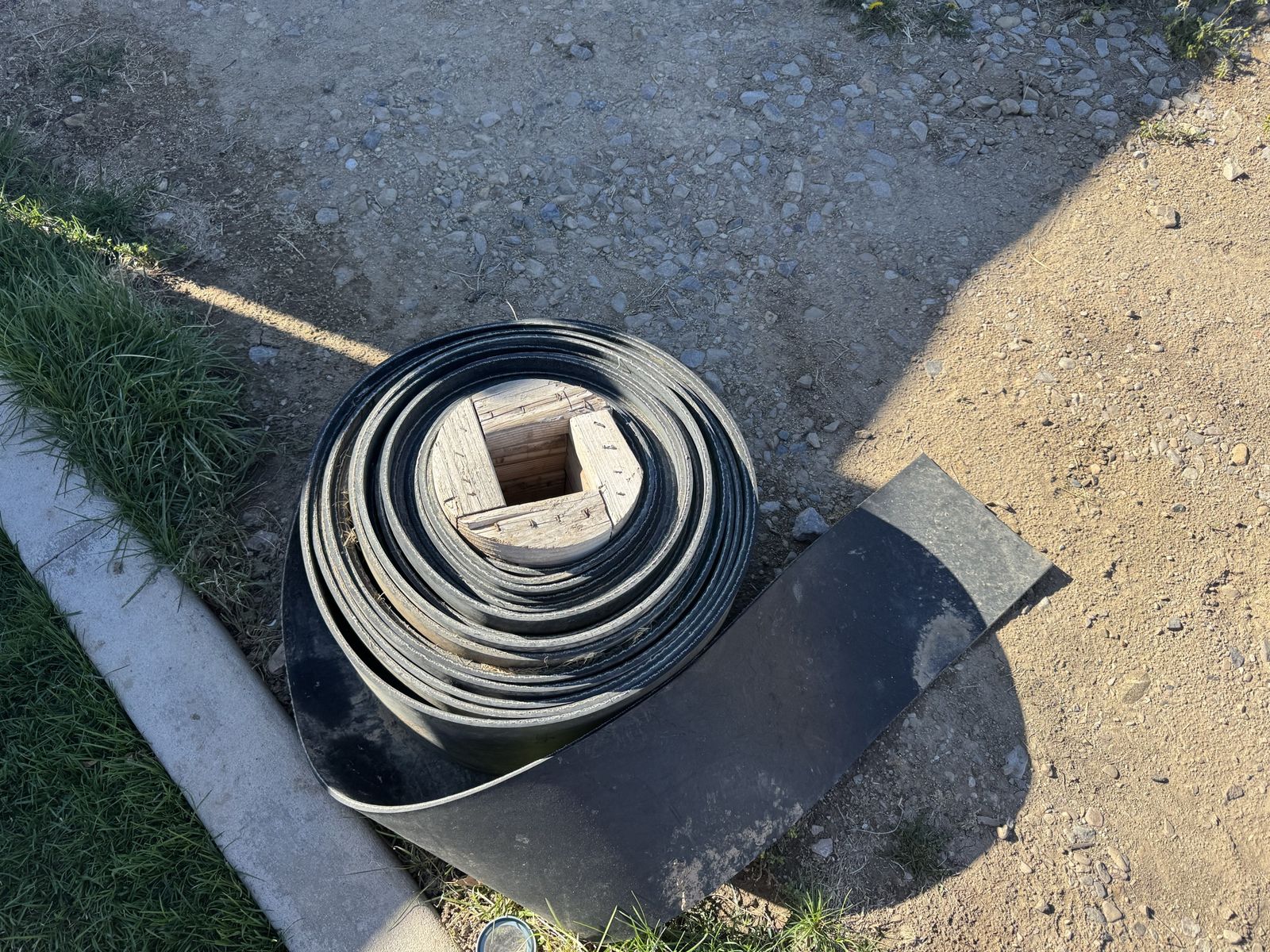 Various lengths and sizes of conveyer belting. 10” is $1 a foot. 12” is $1.50 a foot. 72” is $10 per foot. You’ll have to work out a way to measure it as it’s too heavy for me to move by myself. There are some various pre-cut length… I don’t know how long they are until we measure together. It needs to be put back in rolls when you’re done.