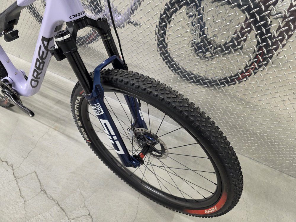 Orbea Oiz omx carbon Large Sid Ultimate Flight Attendant 120mm fork SidLuxe Ultimate Flight Attendant shock Rockshox Reverb axs dropper post 150mm Sram Trabsmission XX SL drivetrain Orbea Oquo carbon wheelset Dt swiss 240 hubs Hope XCR Pro 2 brakes Orbea carbon handlebar Orbea STMP10 60mm stem Vittoria Syerra downcountry 29x2.4 tubeless tires XTR Icetech rotors 180/160