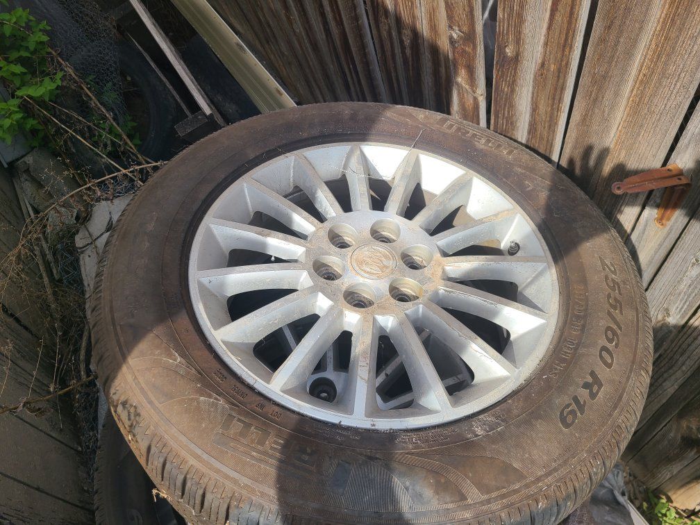 practically new 255 60 19 pirelli all season tires on buick/gm 6 lug aluminum wheels 200 OBO. for all 4. I need them gone. no scammers I also won't be giving them away. already a great deal.