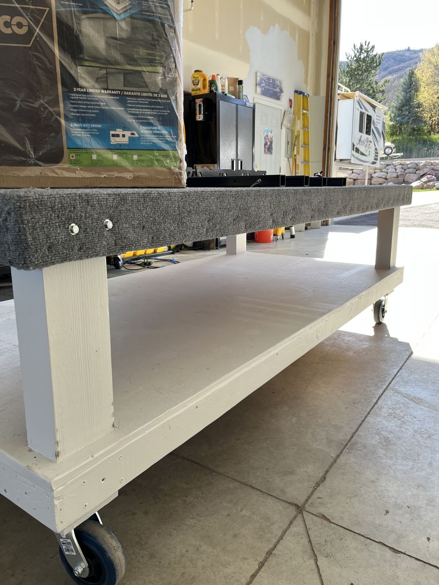 I made the bunk shown in one of the photos specifically for this camper. It’s handy if you need to move it around in your garage and store jacks, accessories and such on the shelf beneath.