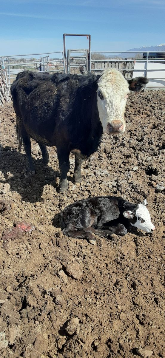 Third is a black white face with a heifer calf born April 1st