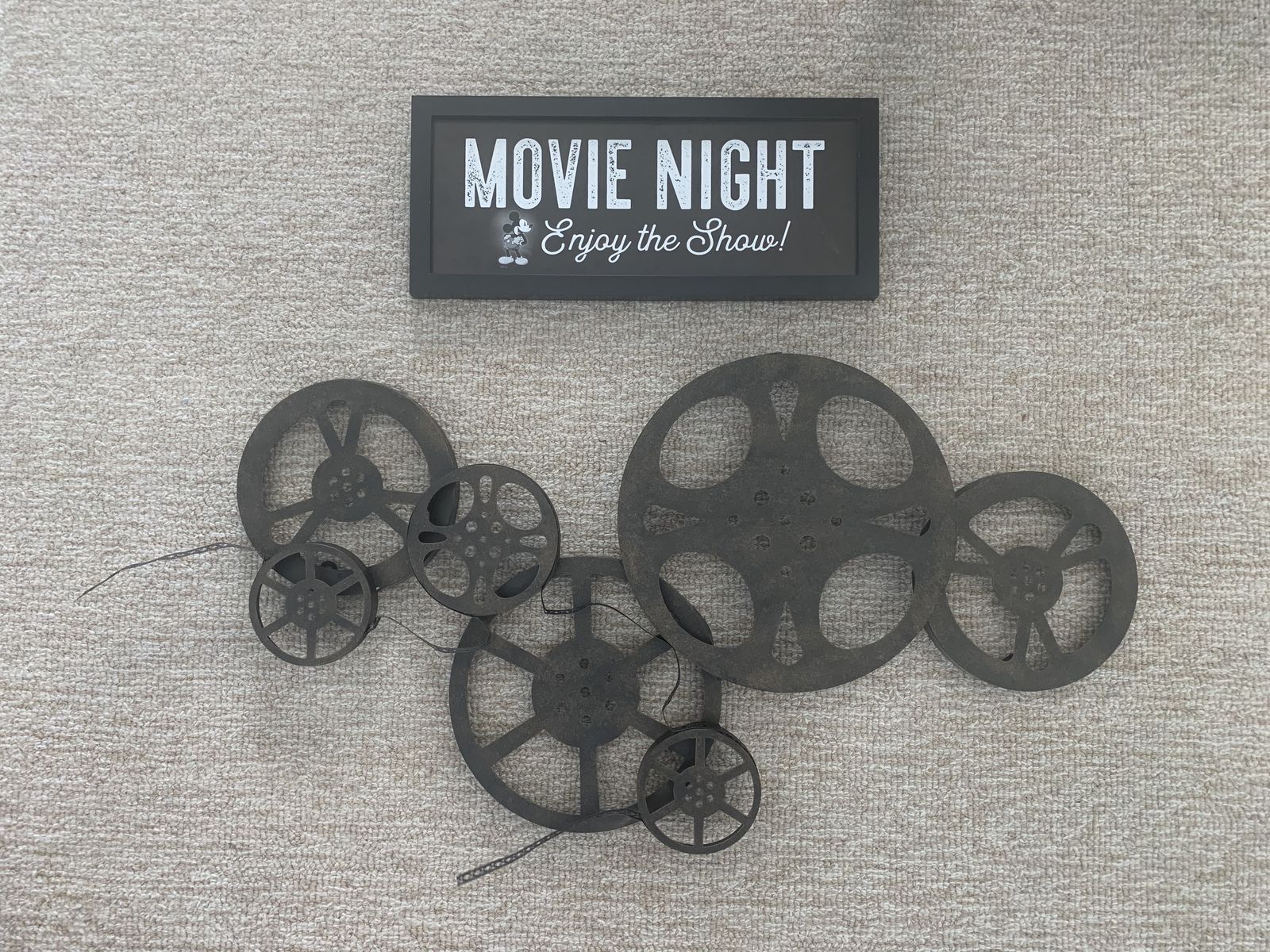 Mickey Mouse Movie Night Sign. Wood. 7 ½” x 17 ½”. Originally priced at Hobby Lobby for $17.99.