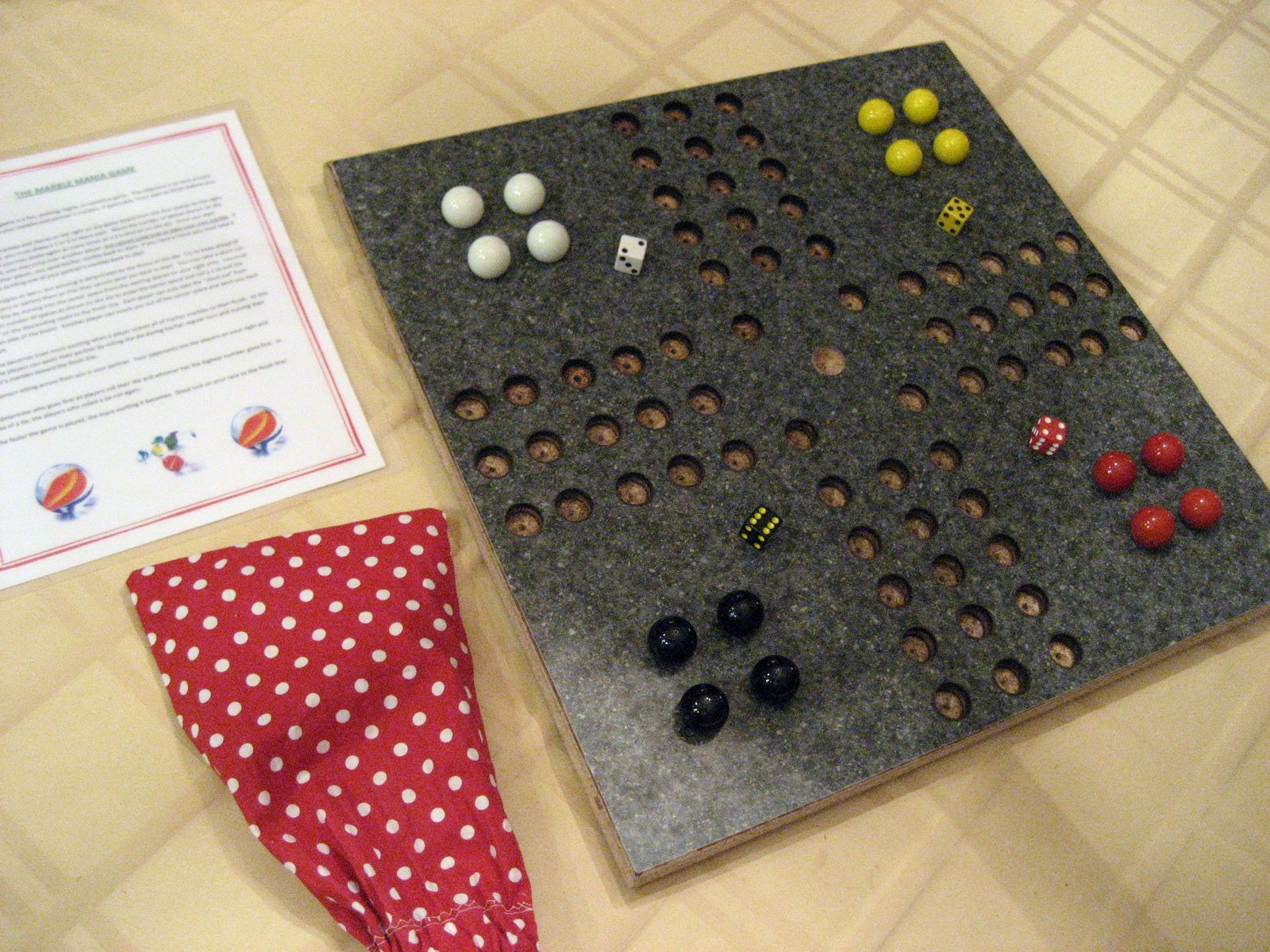 PayPalHand Crafted "The Marble Murder Game" Board, marbles, dice, bag, Instructions