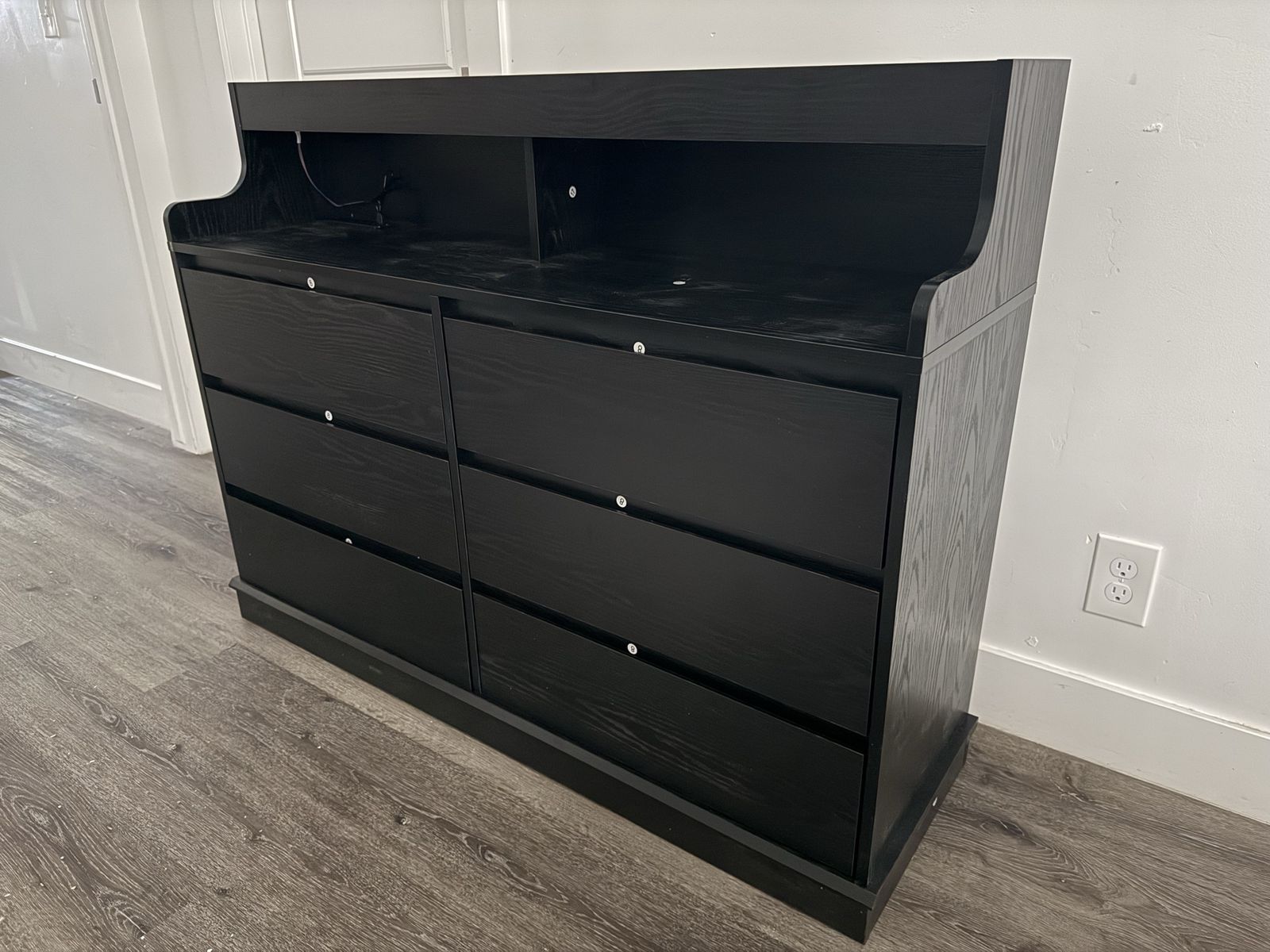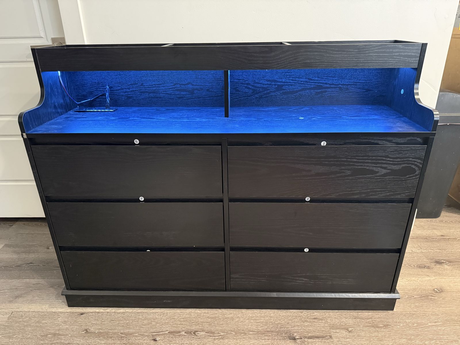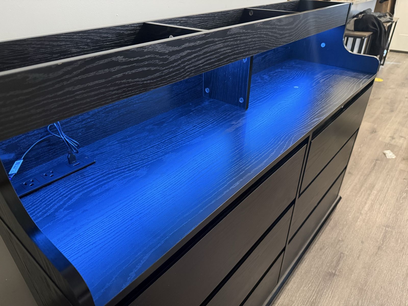 VenmoBrand New Garvee Dresser for Bedroom 6 Drawer Dresser with LED Lights and Charging Station Wide Chest of 6 Drawers with Open Space Modern Large Capacity Storage Cabinet Living Room Hallway Black