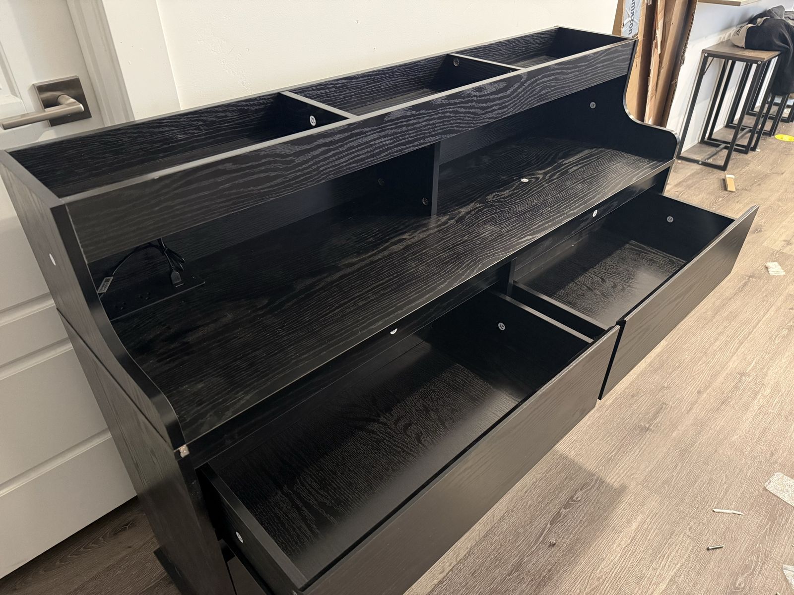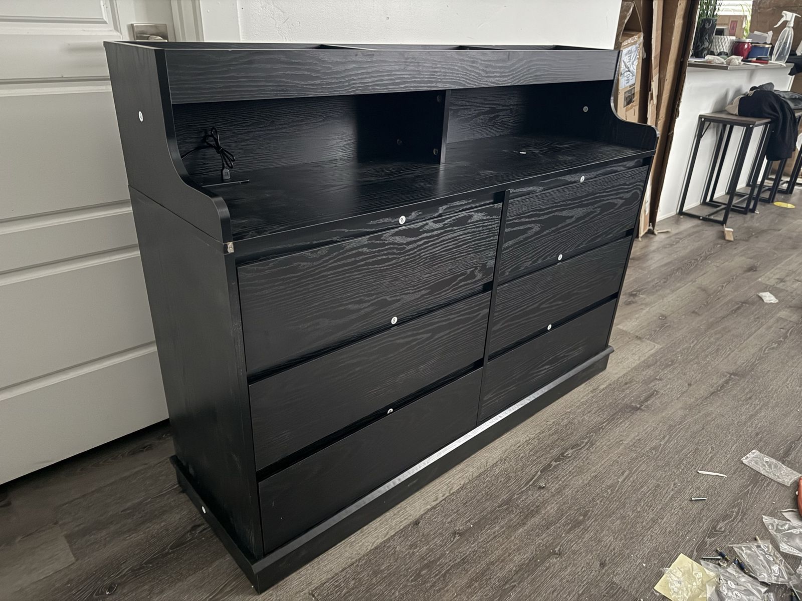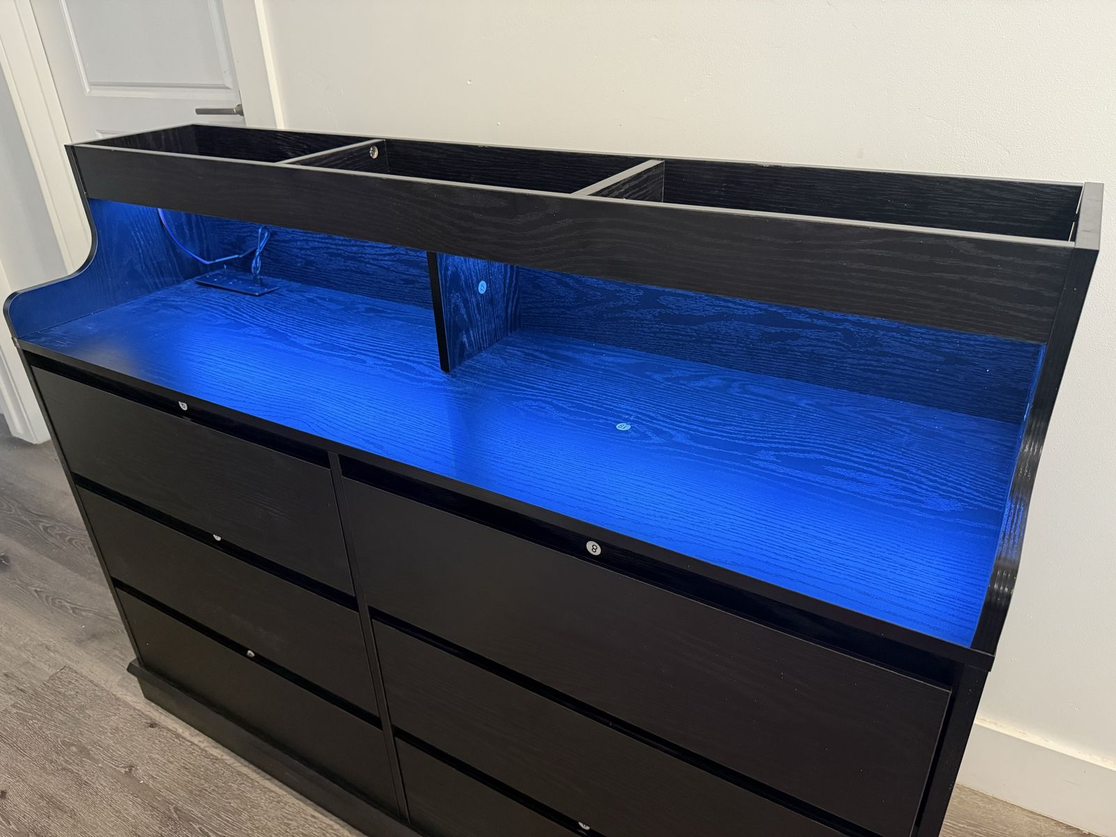 VenmoBrand New Garvee Dresser for Bedroom 6 Drawer Dresser with LED Lights and Charging Station Wide Chest of 6 Drawers with Open Space Modern Large Capacity Storage Cabinet Living Room Hallway Black