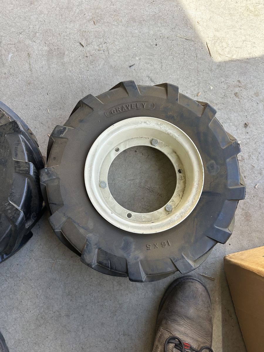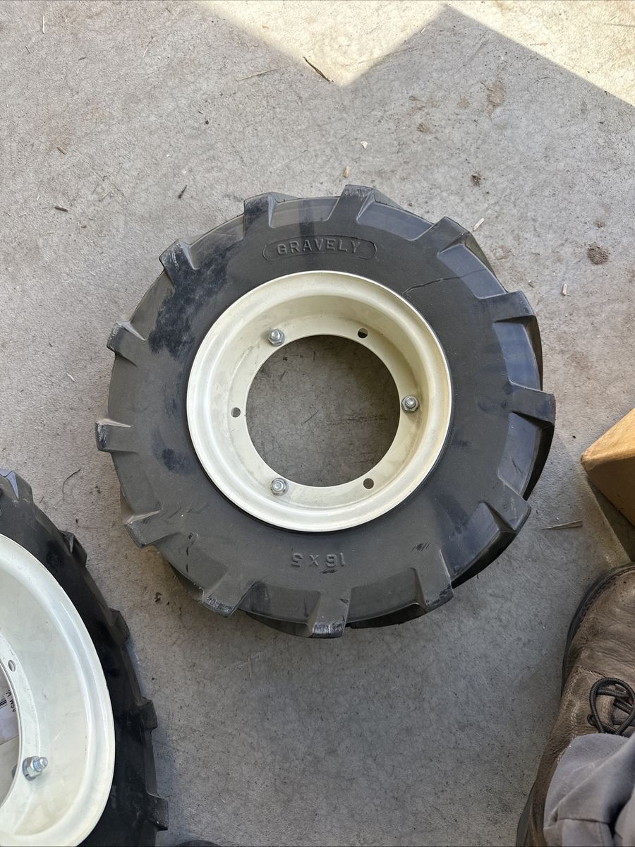 Venmo16x5 gravely tractor tires with split style rims. Brand new. Text of interested thanks