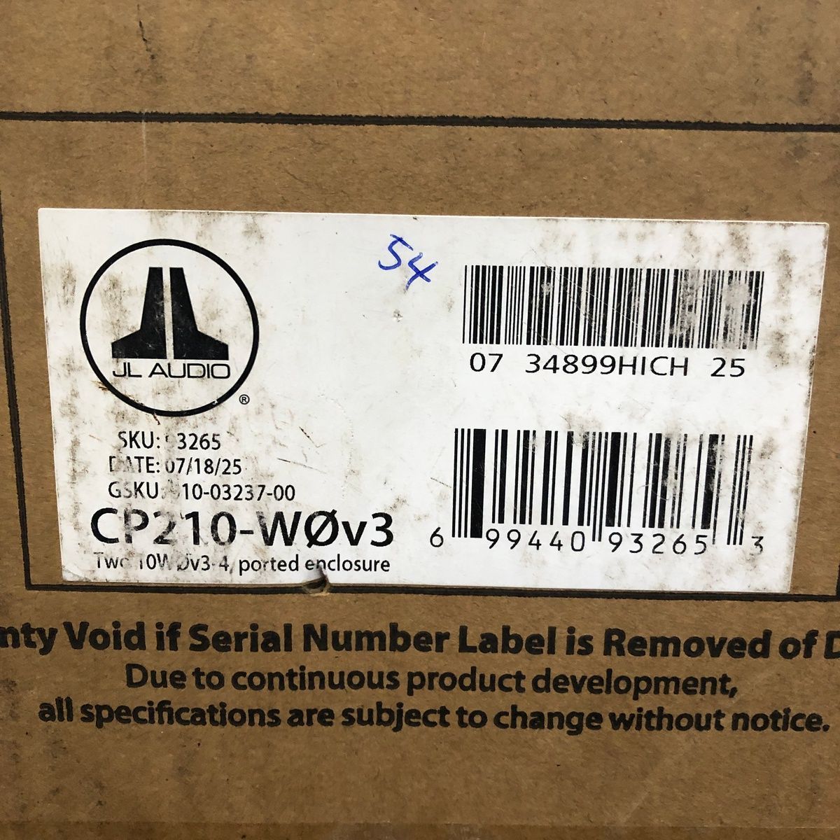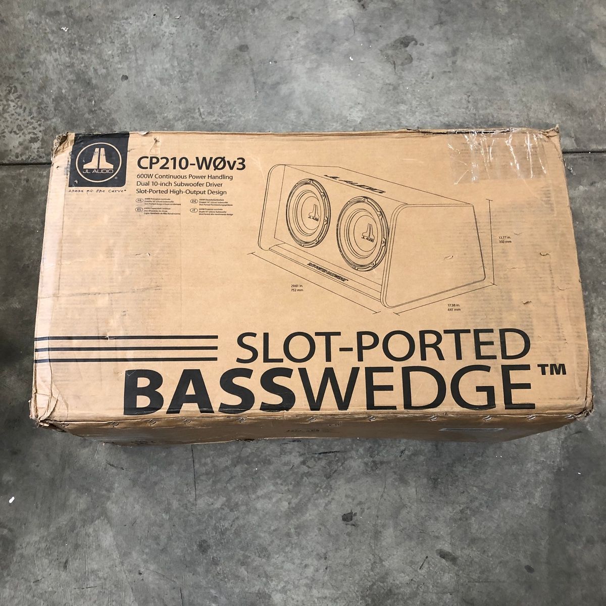 ONE JL AUDIO CP210-W0V3 DUAL 10" BASSWEDGE PORTED 2OHM 10W0V3 LOADED SUBWOOFER ENCLOSURE. This is brand new, never used, only opened for the photos. It's original box was slightly distressed, but the sub and all contents are in new, perfect, unused condition. It was tested briefly before sale and works perfectly. It comes with everything shown. These are normally $350. This is your chance to save big-time so don't miss out!!