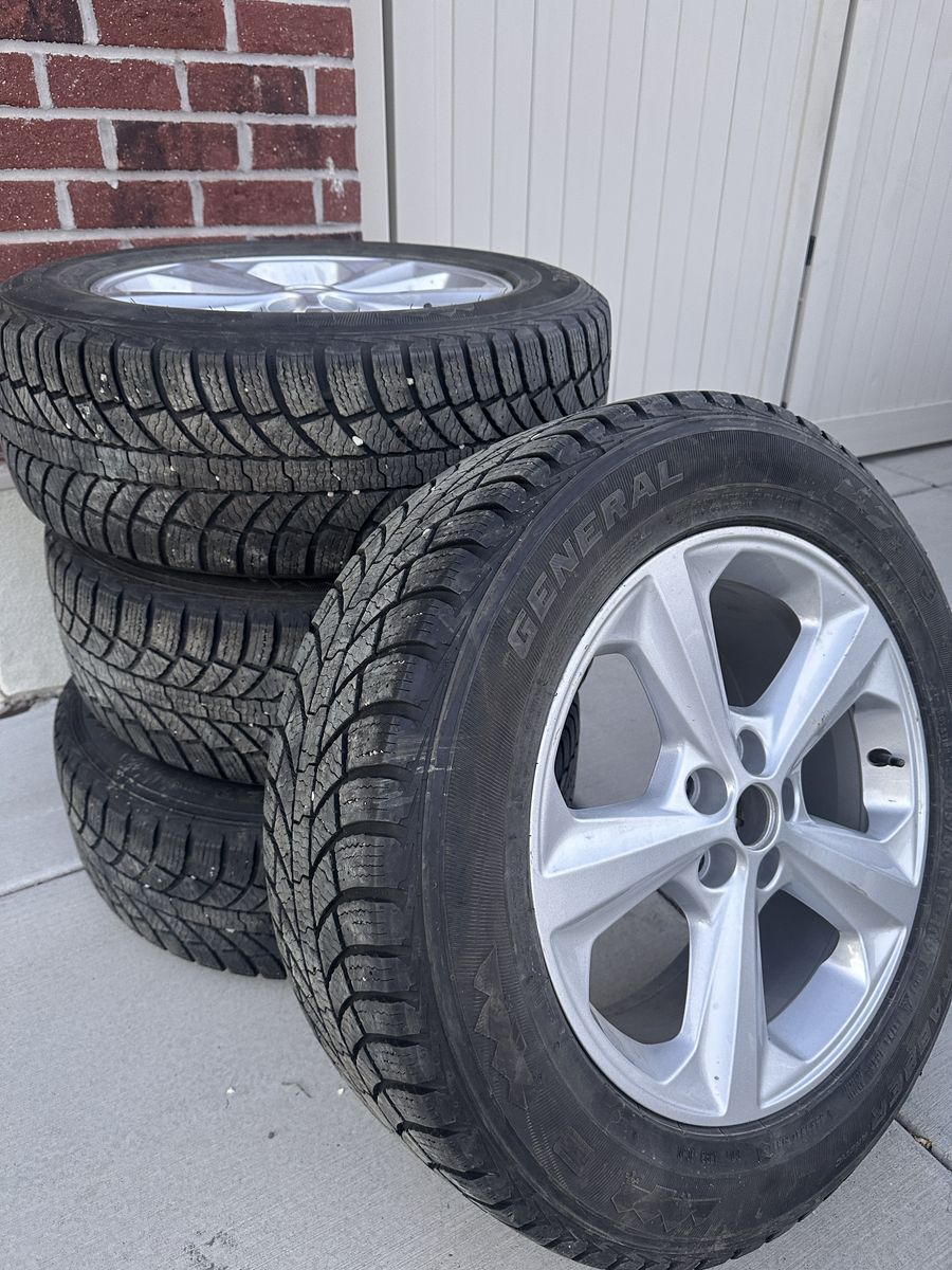 General Grabber 245/60 R 18 109 T m&s Tires with Factory Aluminum Rims. 8/32 Tread remaining. Came from a 2019 Ford Edge SUV. Fits other similar SUV's. All four tires are mounted on rims so you can put them on your SUV for winter travel.