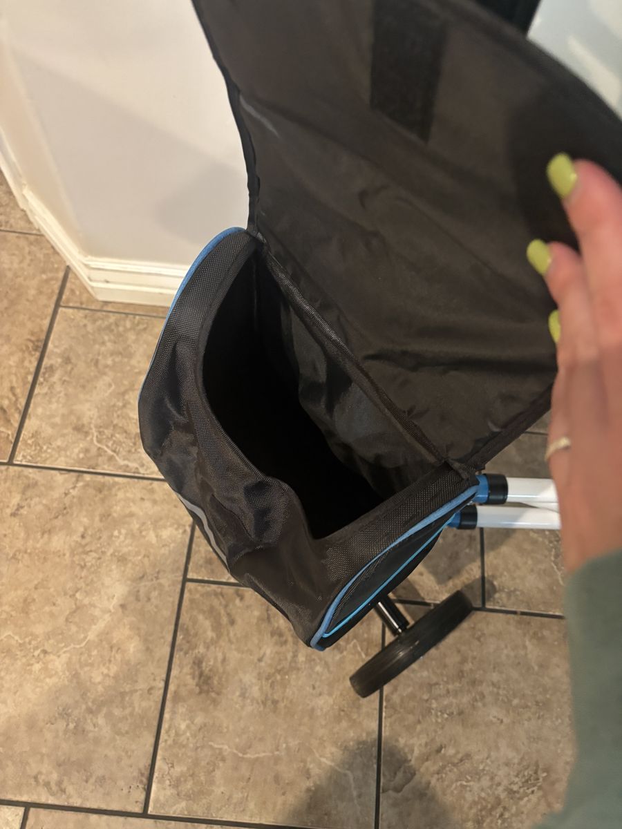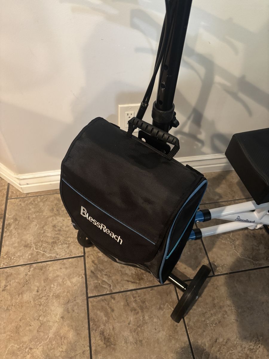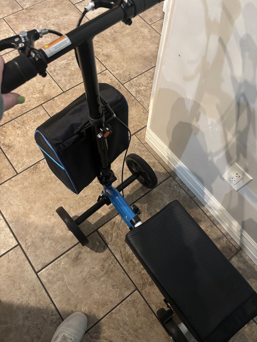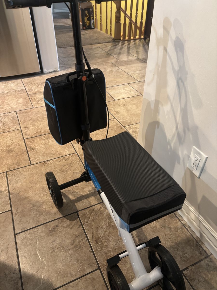 Handlebars and knee pad are height adjustable and it comes with the front bag for storage.