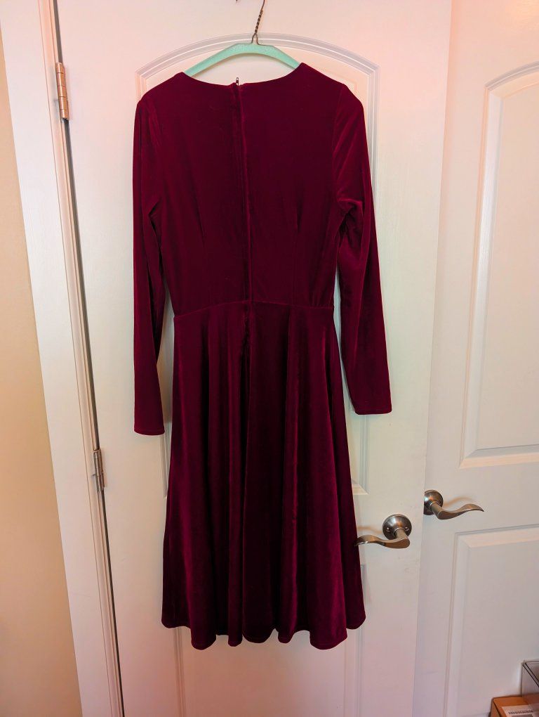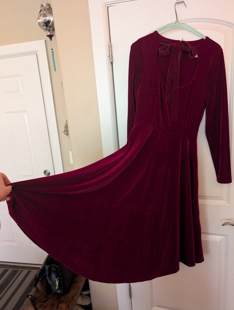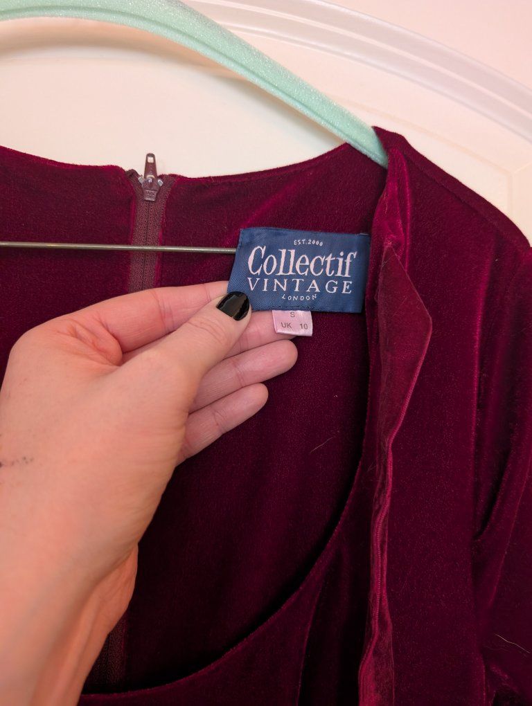 VenmoThis dress is in very good condition. The brand is Colectif Vintage which is based in London. The skirt is very twirly. it's a US size 6. it's a warm dress with long sleeves, and I personally love the velvet ribbons that can tie into a bow or anything else you may desire. There are no stains, rips, holes or any other damage. The zipper in the back works perfectly.