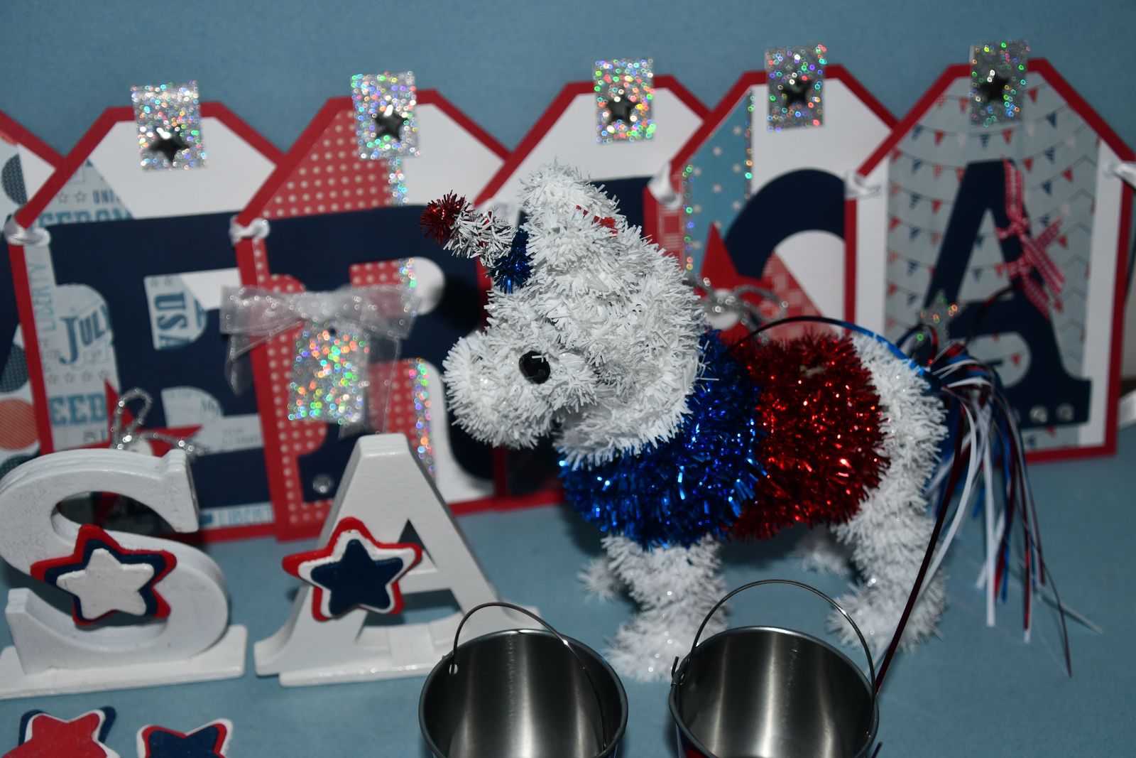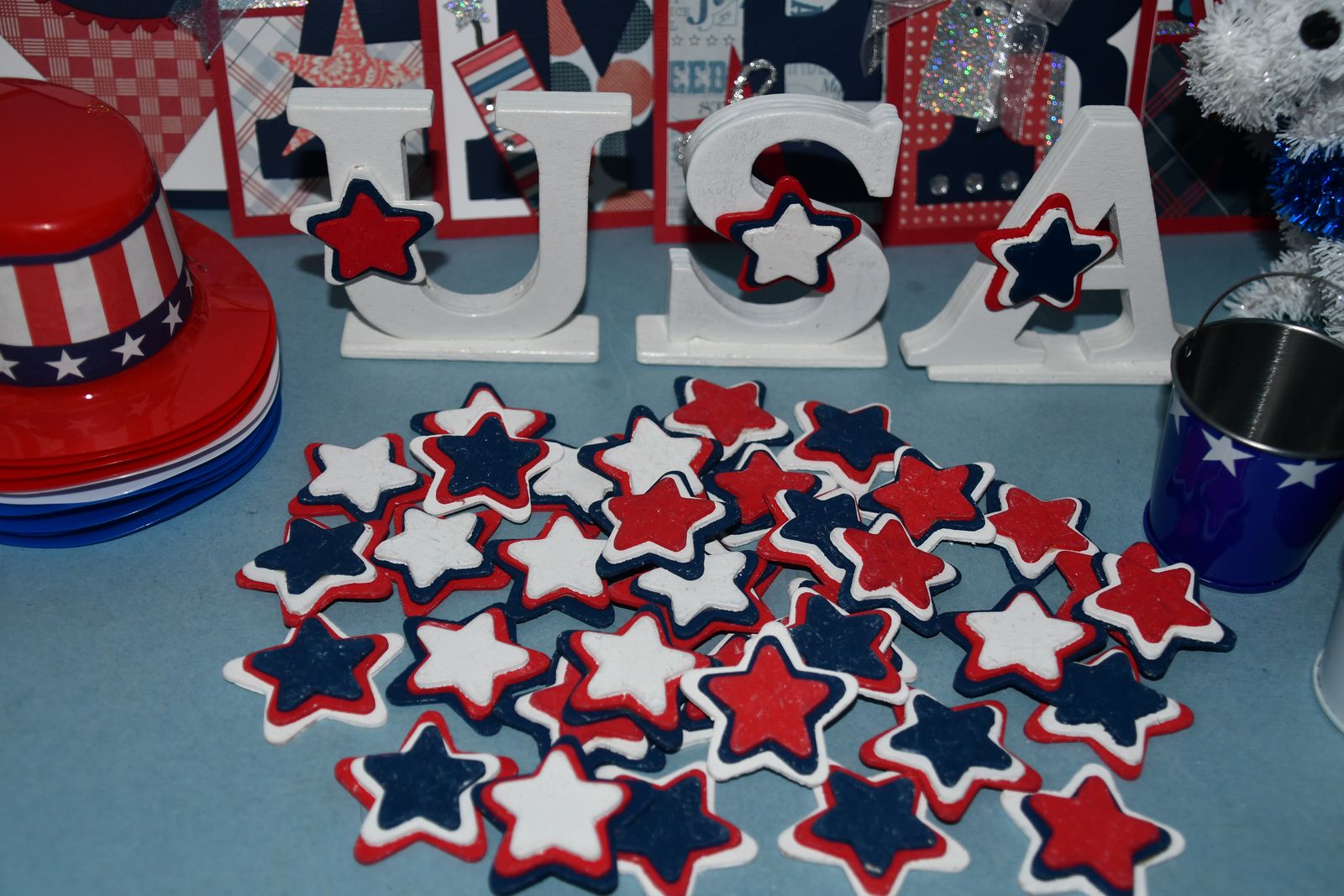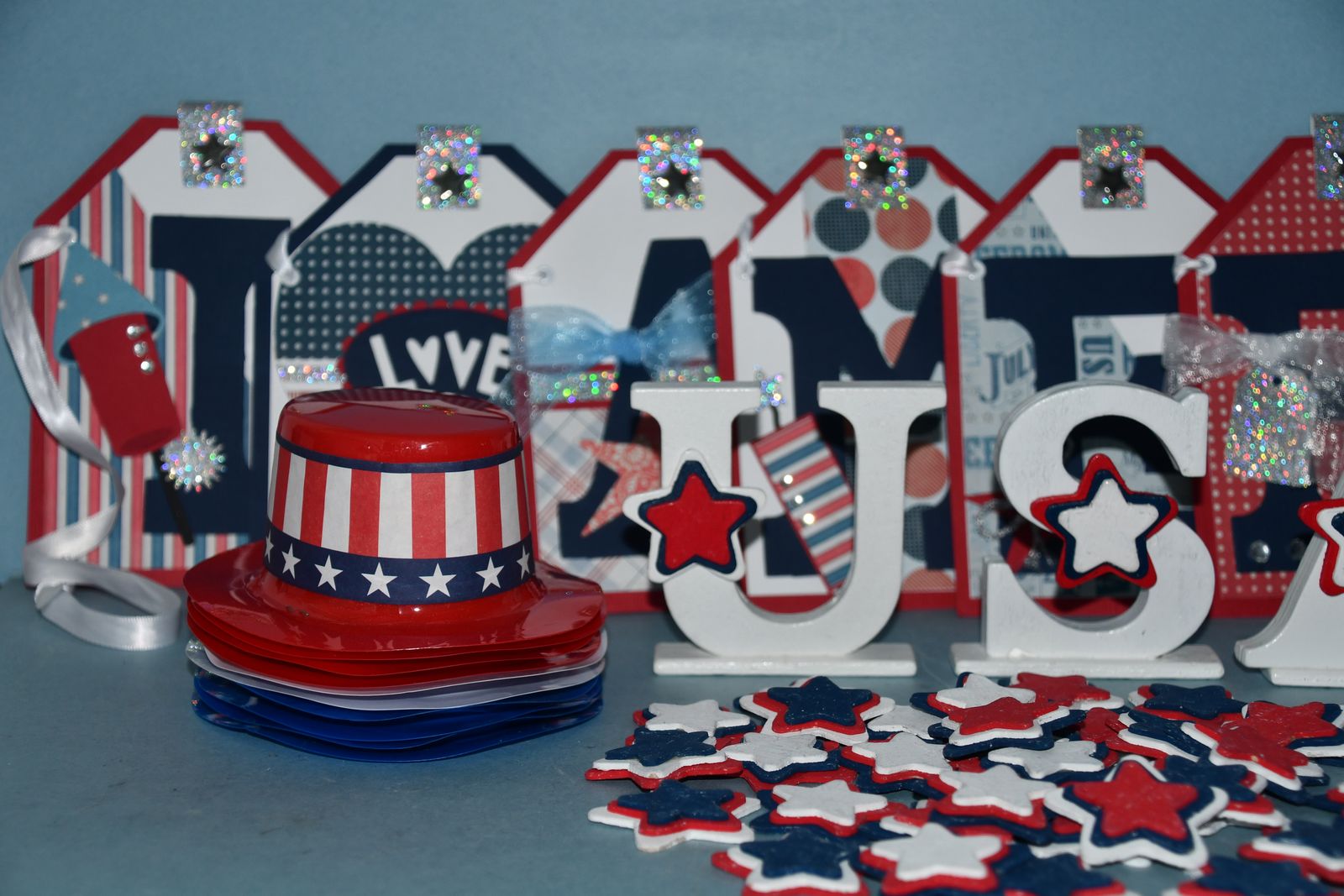 This Set of 4th of JULY DECOR items are from a smoke free home. Questions??? Please ask. We are located in Plain City. Cash only please.