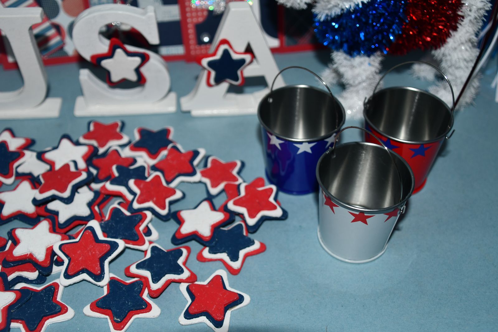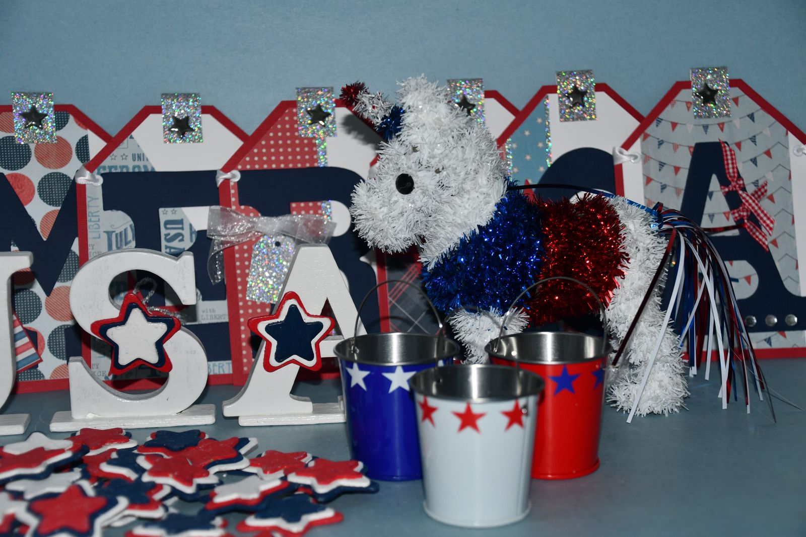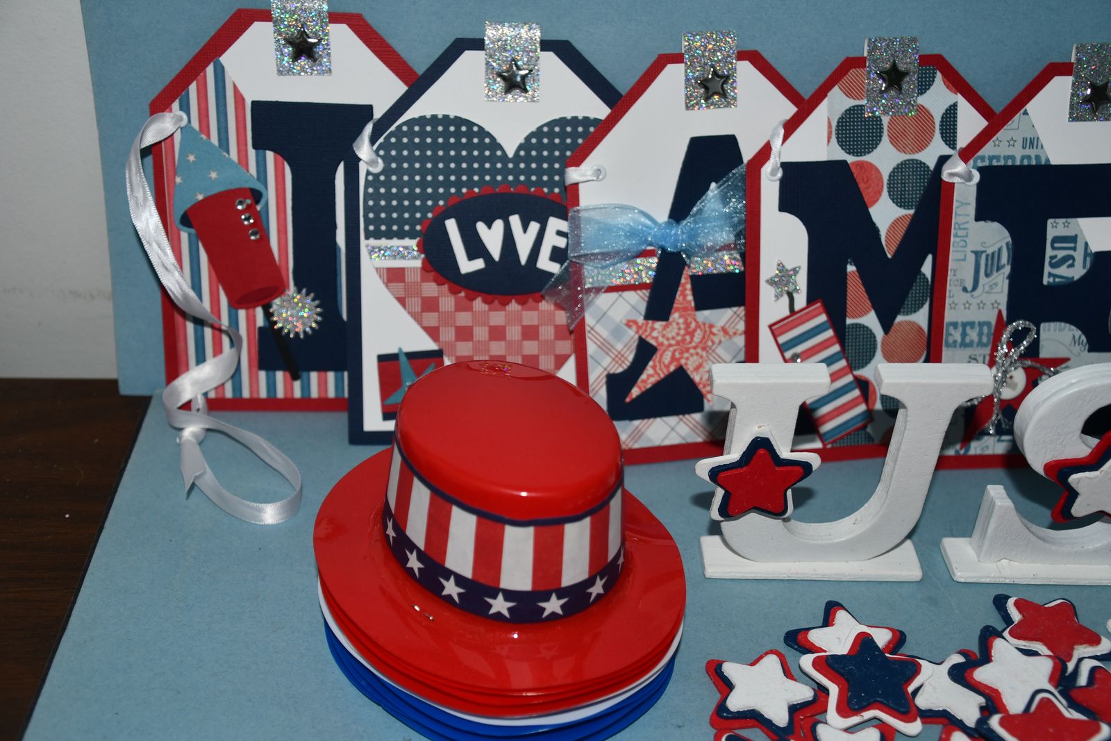 This Set of 4th of JULY DECOR items are from a smoke free home. Questions??? Please ask. We are located in Plain City. Cash only please.