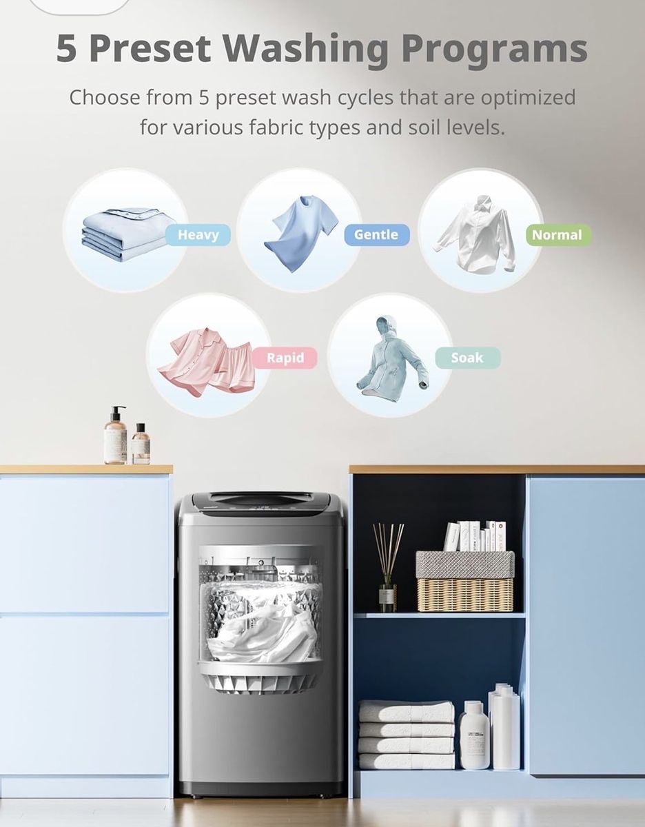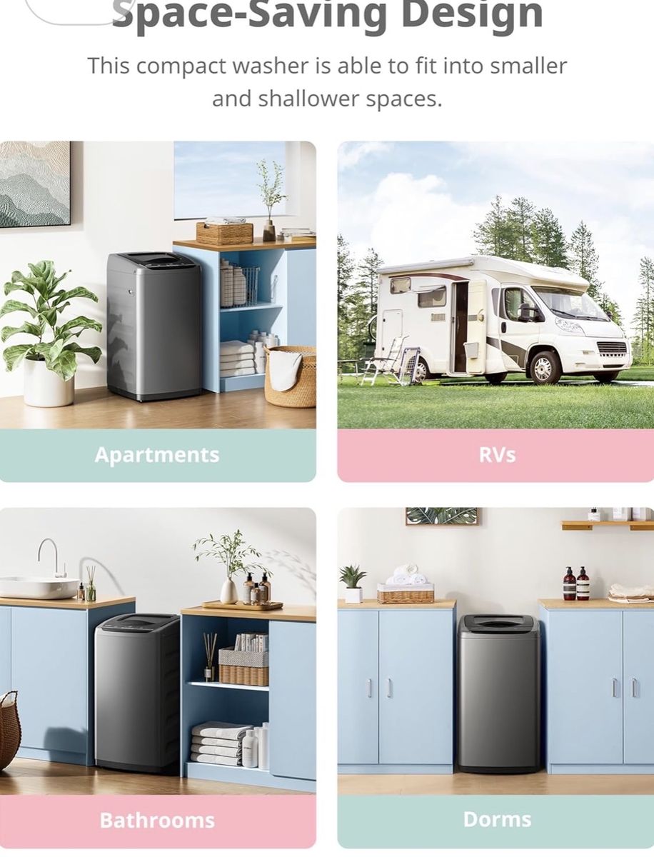 The full-automatic washing machine equipped with Heavy, Soft, Normal, Rapid, and Soak 5 programs and 3 water levels, you are allowed to quickly start the machine the way you like. You are also welcomed to customize your washing program by selecting load size, adding wash time, rinse time, and spin time. This top load compact washing machine with only 18.1 inches in width, 17.7 inches in-depth, and 31.5 inches in height, this portable washer is able to be stored easily. You can store it in your cabinet, RV, dorm, or even bathtub Even better, it comes with wheels and handles for easy movement. It is a perfect choice for small households with limited space and minimal optimal. Normally $249