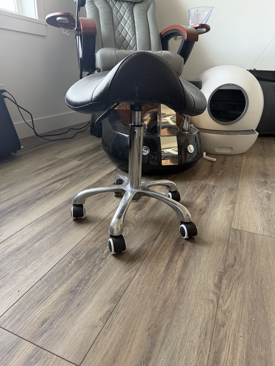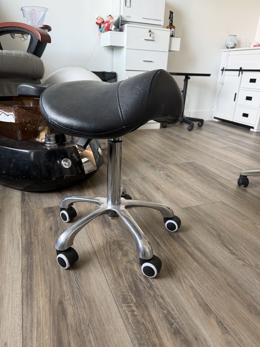 Saddle stool rolling chair with adjustable hydraulic stool on wheels