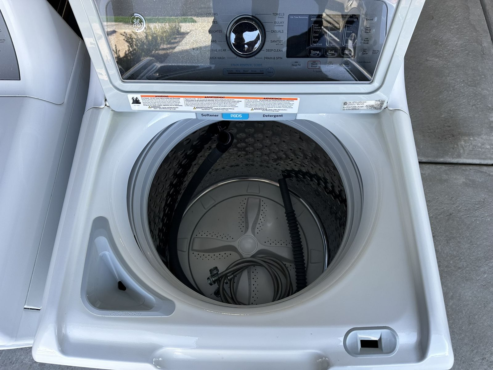 VenmoSelling a GE washer & dryer set. Fully functional with no damage or dents, very clean and includes connection lines (dryer vent and hot/cold water). The washing machine is top loading with an impeller in the bottom of the tub, works well for washing comforters or other bulky items, the dryer is electric.