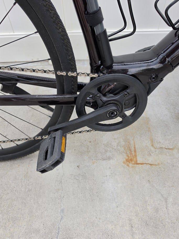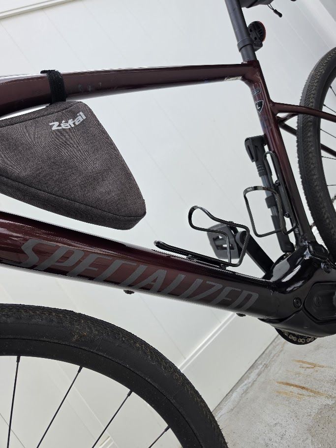 The second e-bike is a 2022 Turbo Vado SL 4.0 step-through in Cast Cumber/Silver Reflective color. There is no other e-bike out there with ride quality, range, and power like this one, at a weight that is easy enough to carry (34lbs). This e-bike is a large frame (5'9" to 6'1"). It has an integrated extra-bright, built-in lights in front and back to be seen. Vado is its Turbo SL technology, the advanced and integrated electric bike system that delivers and unequaled combination of light-weight, natural feel, anti-theft functions, training tips, a full-function bike computer, ride anywhere range, and many more features that can be given to you. It works with your mobile phone for a detailed and monitored ride. There are 705 miles on this bike. Several additional accessories are included. This bike is priced at $1800.