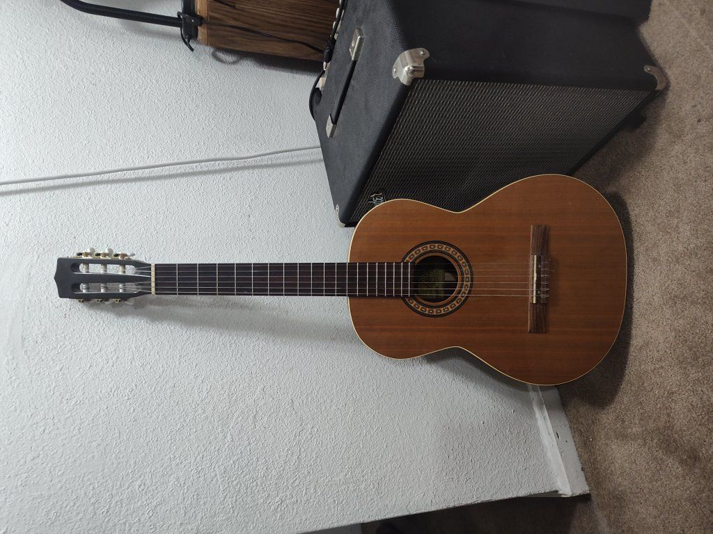 La Patrie: Collection Classical Guitar- $300 - Old strings and mismatched tuning pegs on this one. Wonderful practice guitar that'll last a long while.