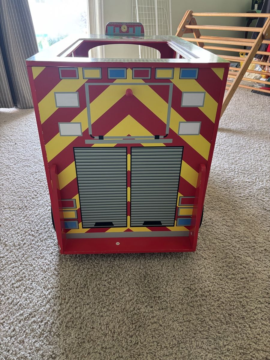 Kids fire truck About 3 by 2 feet. Good used condition.