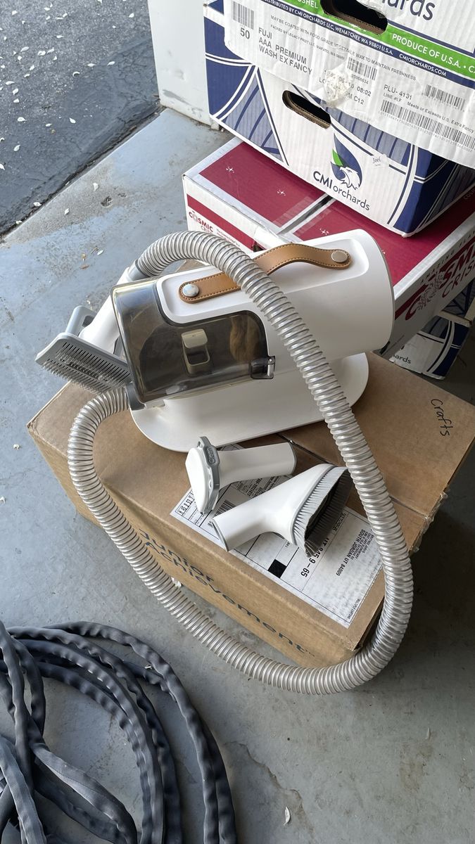 VenmoThis is a vacuum that has multiple attachments for different kinds of animal hair. You brush the animal and the vacuum with suck up all the hair keeping everything clean.