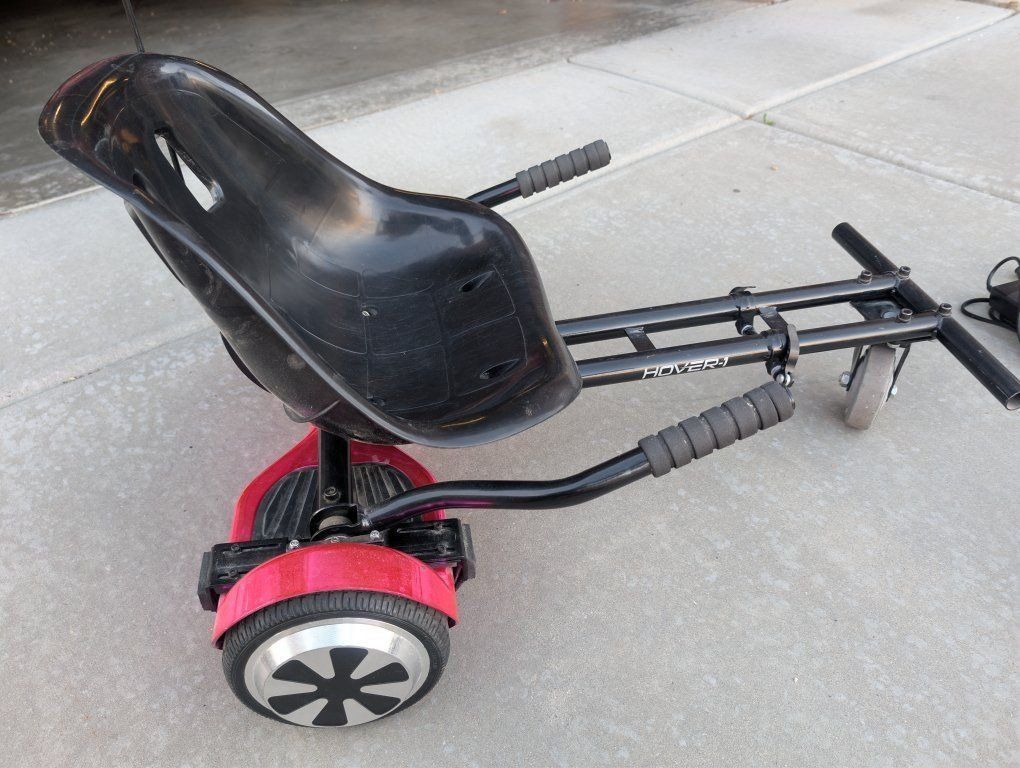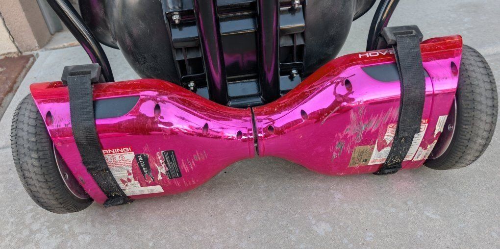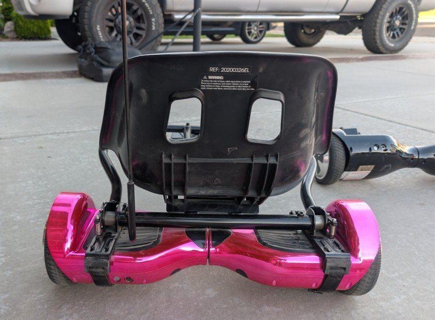 Venmo2 Hover1 hover boards and 1 Hover1 buggy attachment. These have been sitting for a few years but they charge and hold a charge. The buggy is a blast but my kids have out grown these so they're ready for someone else to thrill themselves with. The flag on the buggy attachment has broken off and the pink board has some scratches on the bottom but other wise they're on pretty decent shape. the black board is very lightly used.