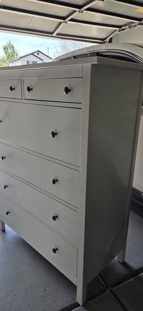 ikea Hemnes dresser white gloss all the drawers open and close perfectly there is a couple imperfections on the bottom drawer face the gloss finished come out after that in great condition im selling it FCFS CASH ONLY