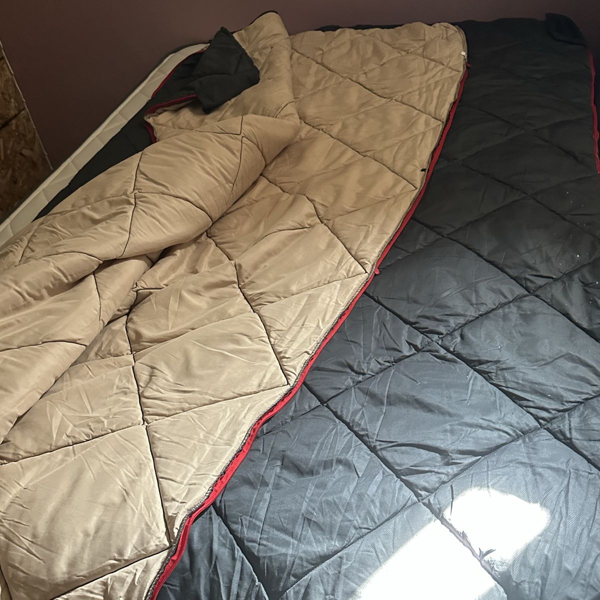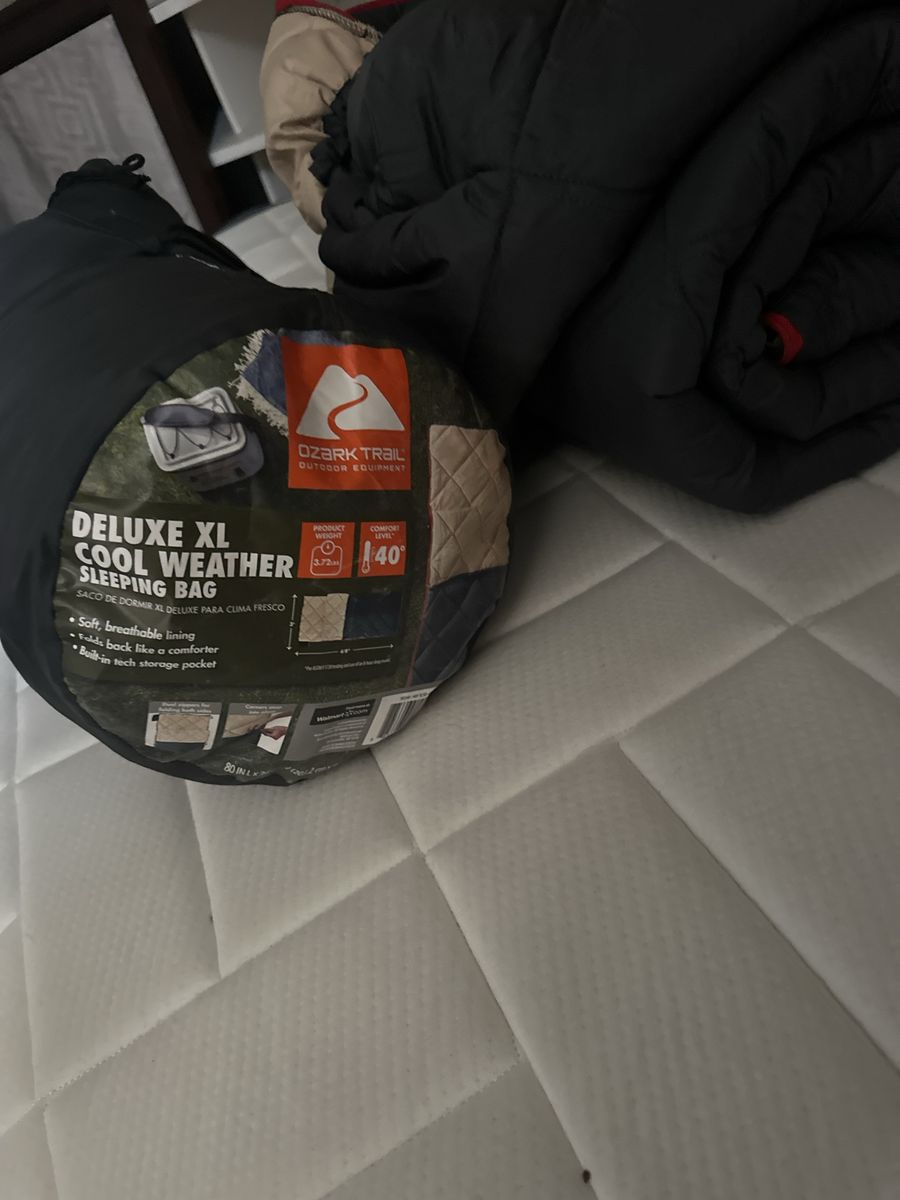 VenmoOzark deluxe XL cool weather sleeping bags, two $20 each, 80”x 36”, corners snap into place, double zipper for folding both sides