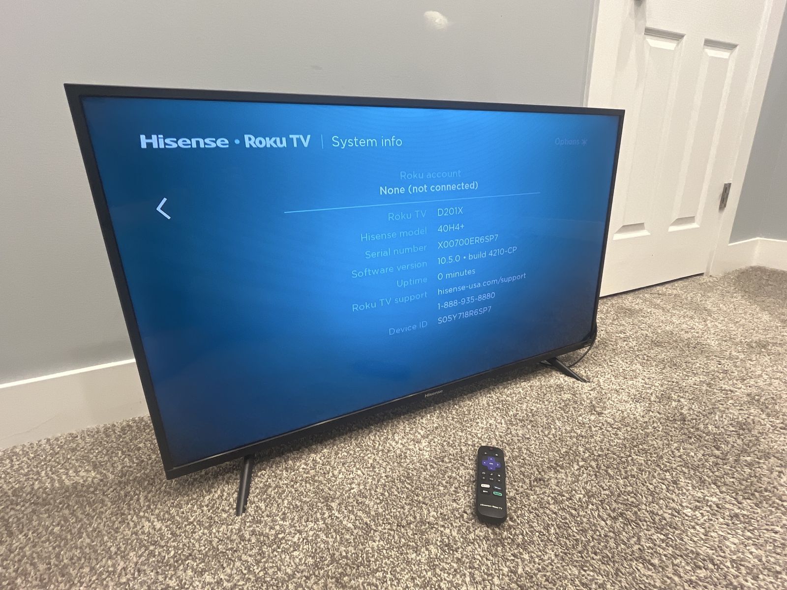 Roku Hisense 40in TV comes with a remote. Everything works perfectly, I can throw in a extra HDMI Cable for free aswell