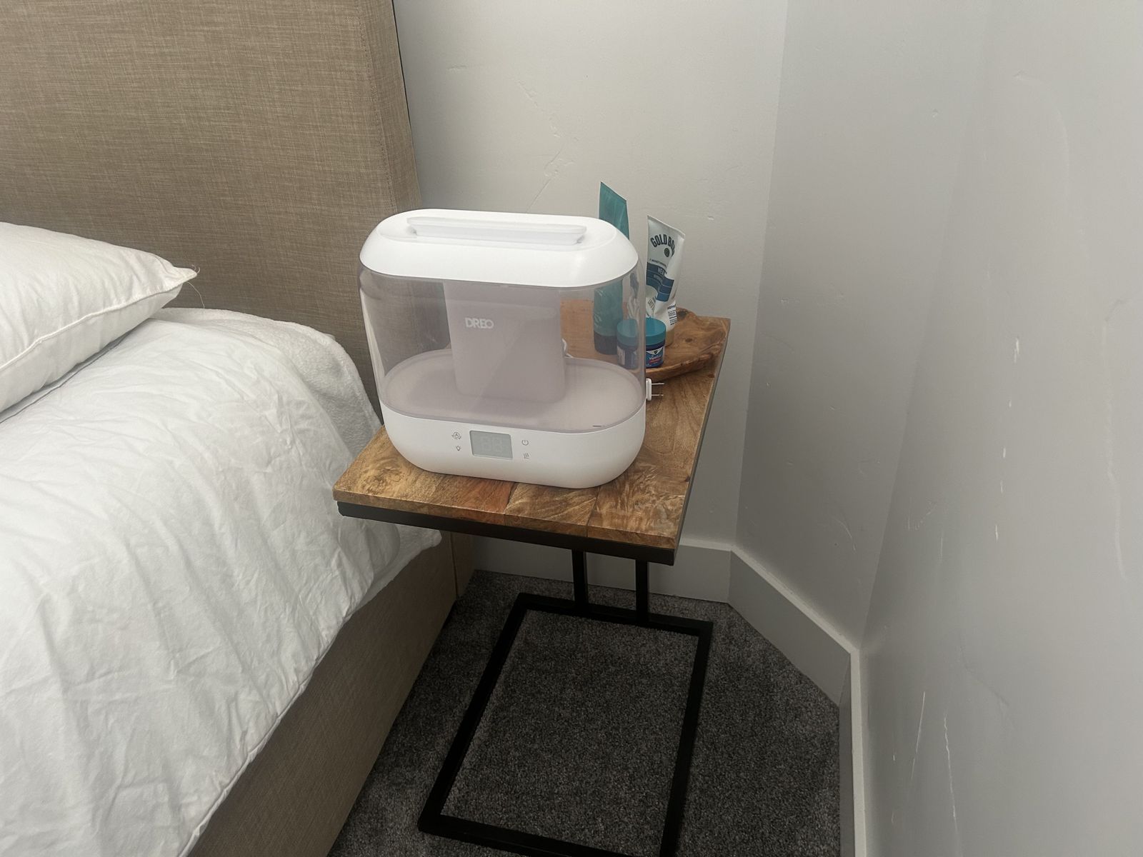 ApplePaySide wooden table for sale, excellent condition. I keep my humidifier and some skin care products on it. Good for bedside area for small space or next to couch to rest laptop.