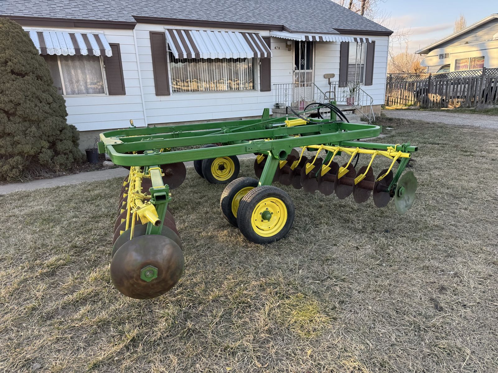John Deere 110 disc ready to go to work has new paint job and newer tires