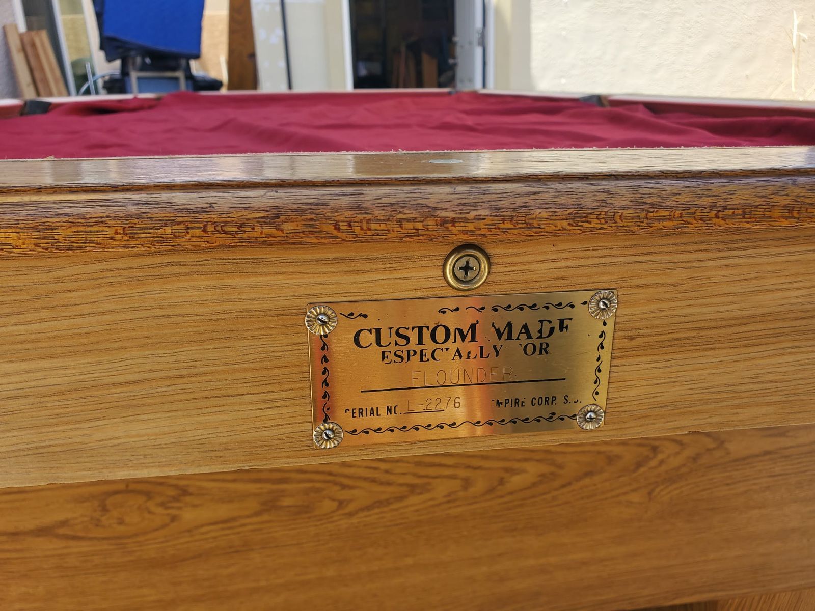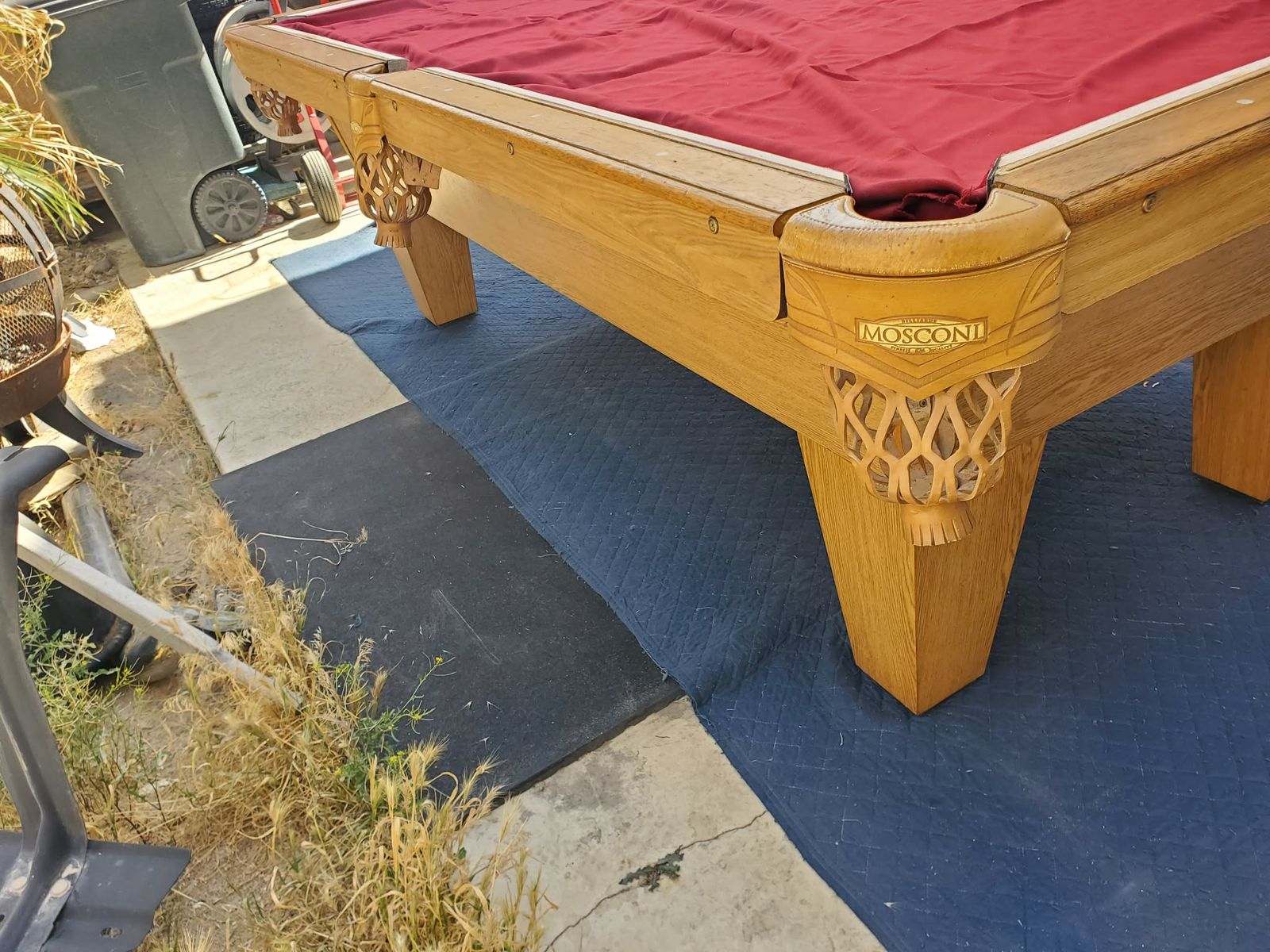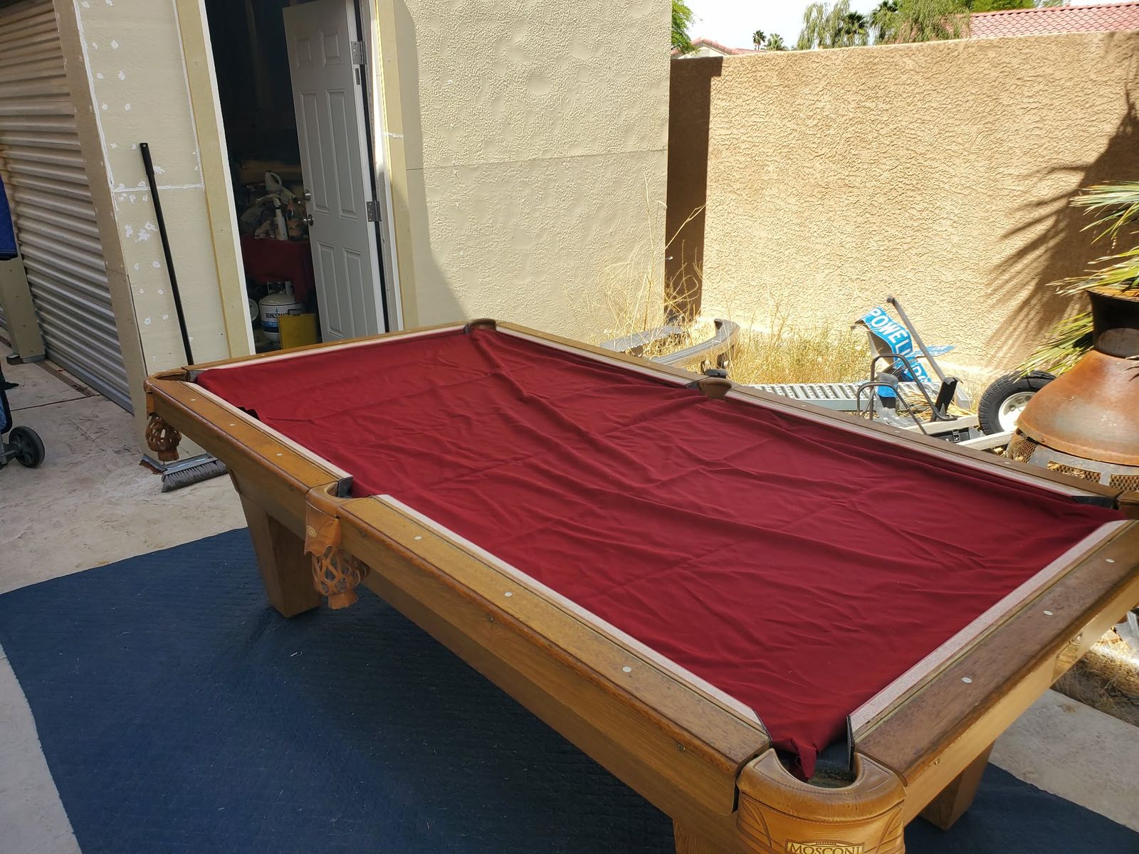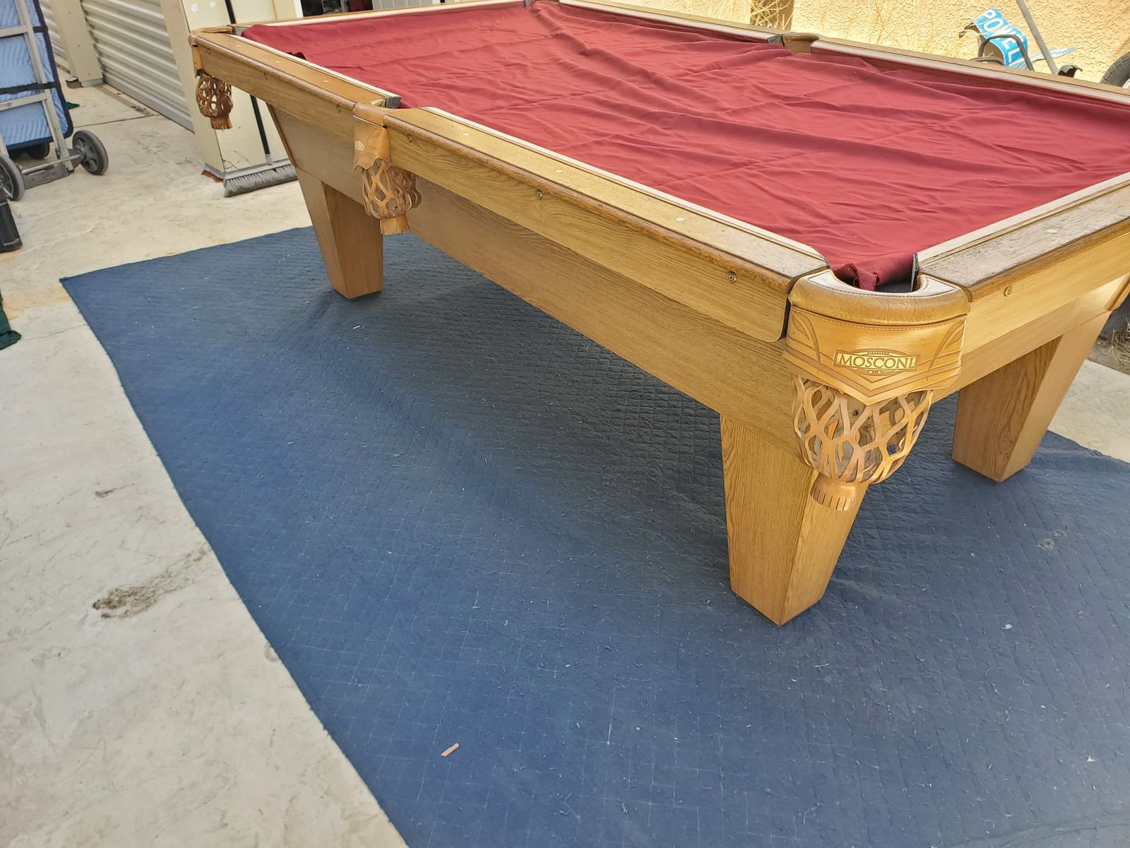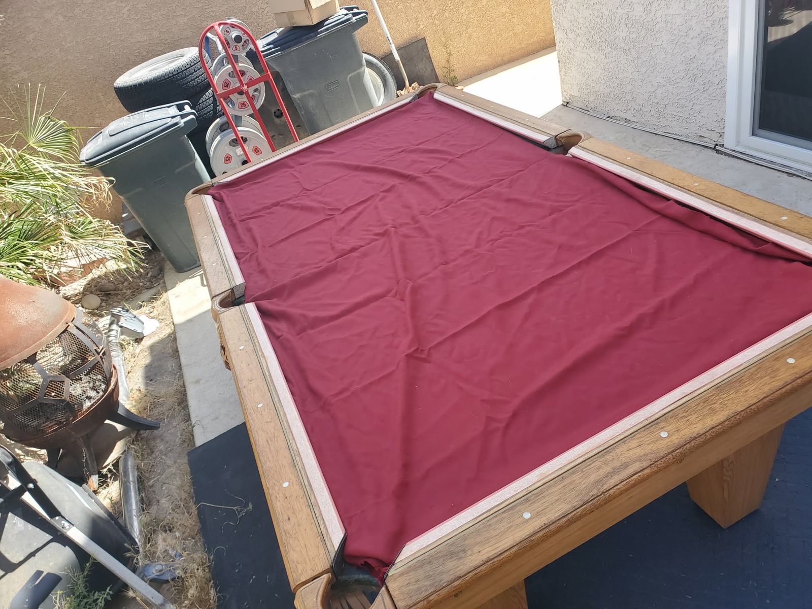 8ft empire pool table in a golden oak stain. Comes with accessories and delivery and installation including whatever color cloth you like. Table has brand new cushions as well. Table was only set up outside for pictures and then was put back in storage.