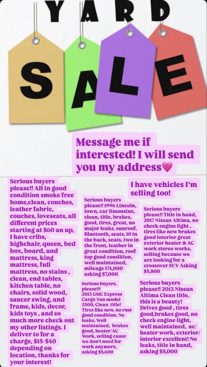 VenmoSerious buyers please!! I’m located in Saratoga Springs if you’re interested message me and I’ll send you my address. yard sale is going on now All in good condition smoke free home,clean, couches, leather fabric, couches, loveseats, all different prices starting at $60 an up, I have cribs, highchair, queen, bed box, board, and mattress, king mattress, full mattress, no stains , clean, end tables, kitchen table, no chairs, solid wood, saucer swing, and frame, kids, decor, kids toys , and so much more check out my other listings. I deliver to for a charge, $15-$40 depending on location, thanks for your interest!